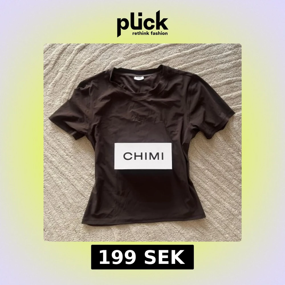 Snygg mörkbrun t-shirt från CHIMI med korta ärmar och rund hals. Perfekt för en stilren look. Logotypen är diskret placerad på bröstet. Endast testad, aldrig använd! Material: 74% Polyamide (recycled) / 26% Elastane. Köptes för 800kr!