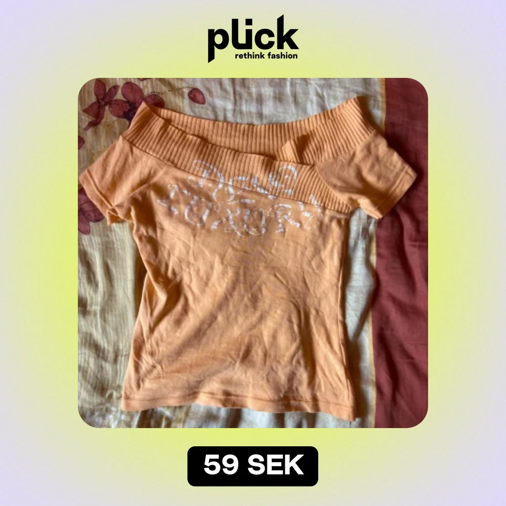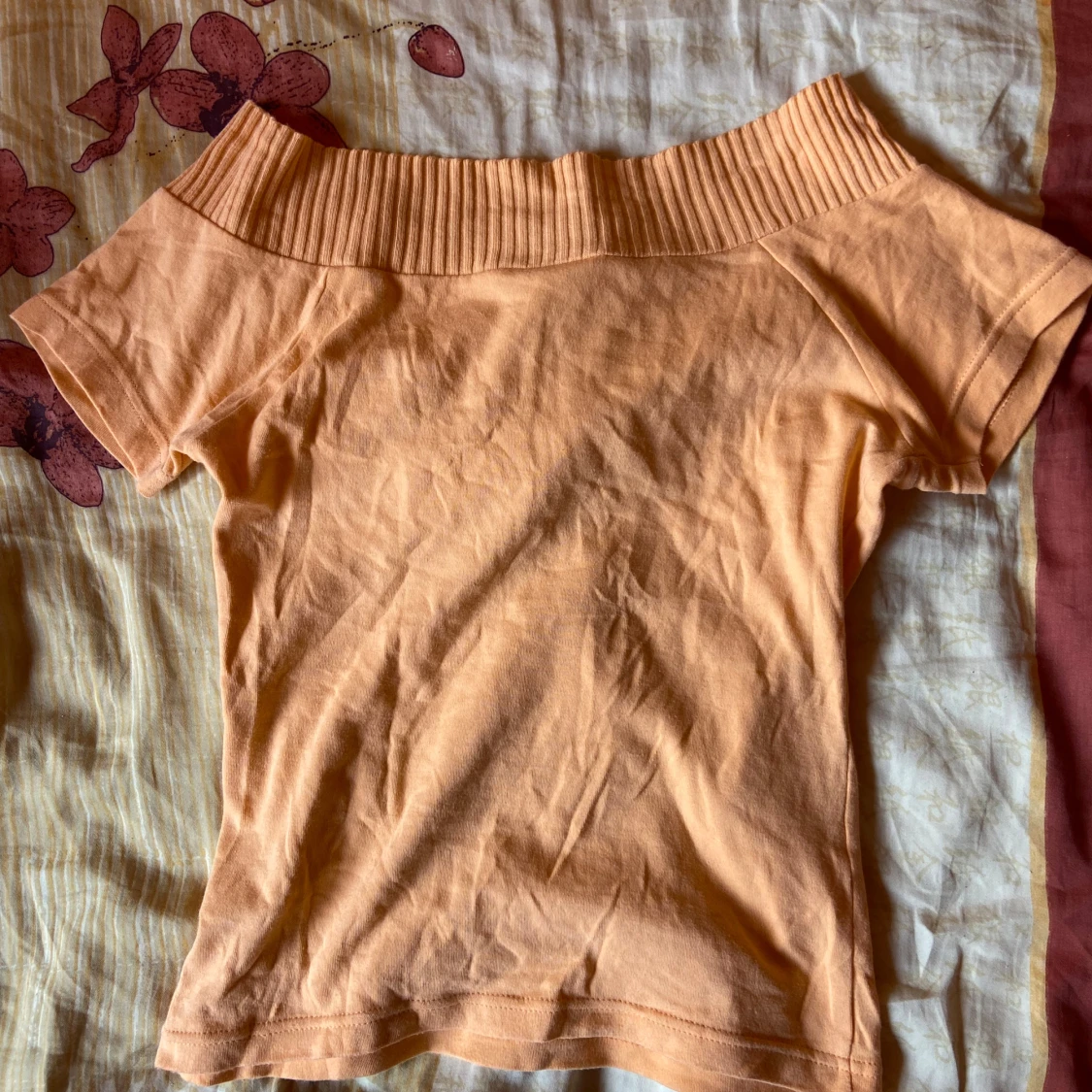 Orange off-shoulder t-shirt med vit detalj på framsidan. Står inget märke så skriver in Zara. Sitter som S-M✨nyskick