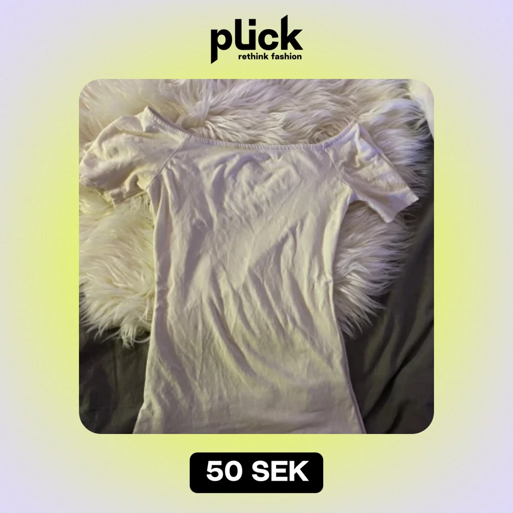 basic vit offshoulder bomulls t-shirt som sitter tight! litet hål vid armhålan men går att sy enkelt🤍