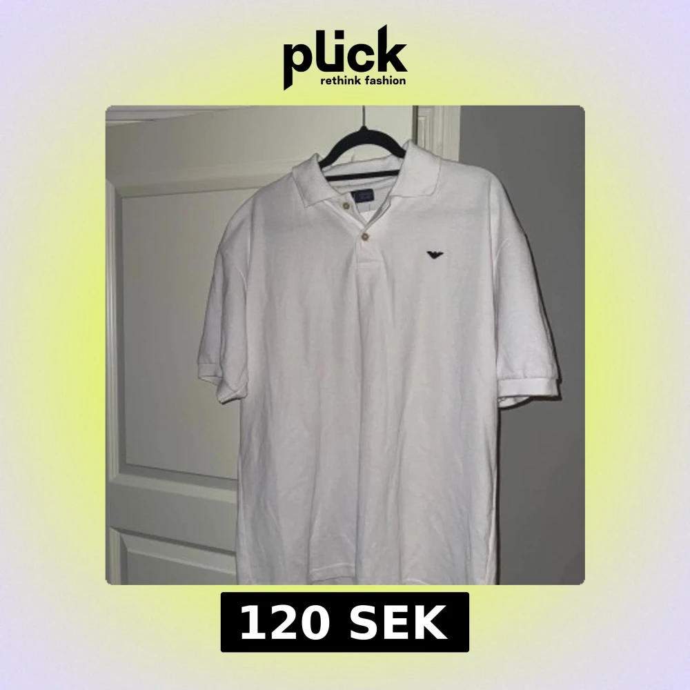 Säljer en stilren vit pikétröja från Armani Jeans. Tröjan har korta ärmar och en klassisk krage med knappar. Perfekt för en avslappnad men ändå elegant look.