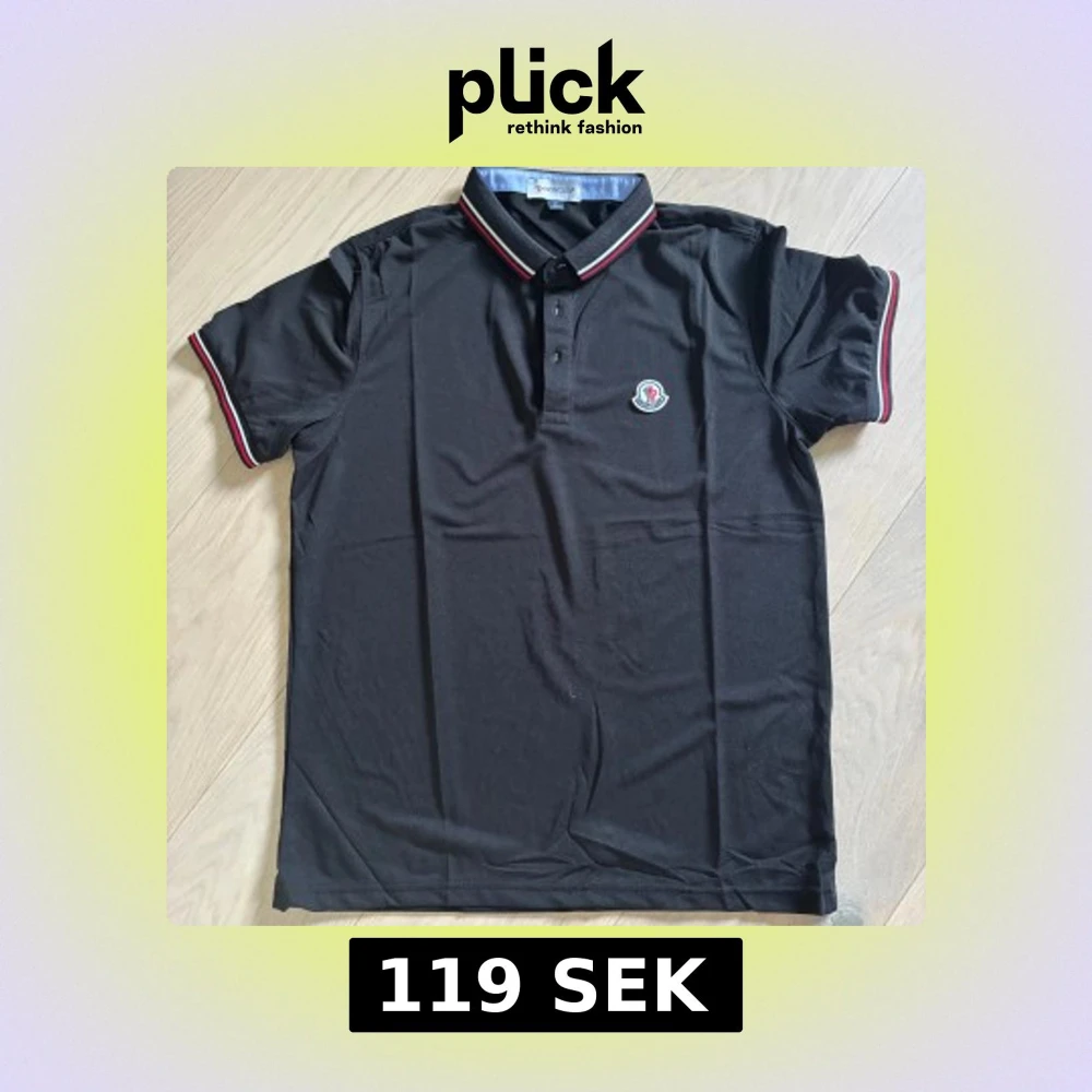Svart Moncler pikétröja med röd/vit detalj