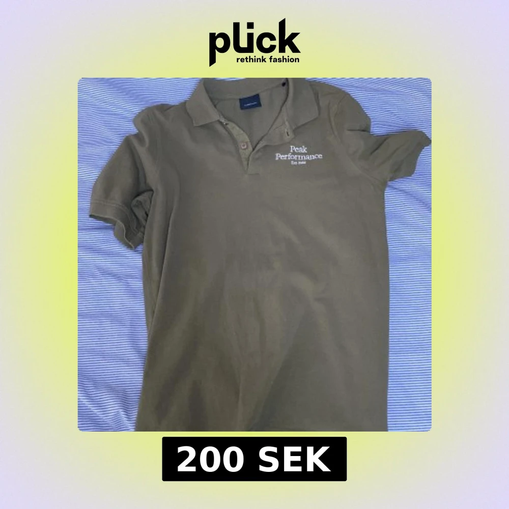 Säljer en snygg olivgrön pikétröja från Peak Performance. Tröjan har korta ärmar och en klassisk krage med knappar. Broderad logga på bröstet ger en stilren touch. Perfekt för en avslappnad look!