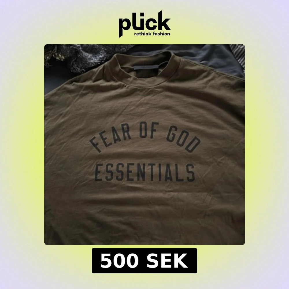 Snygg olivgrön t-shirt från Fear of God Essentials med tryck framtill.