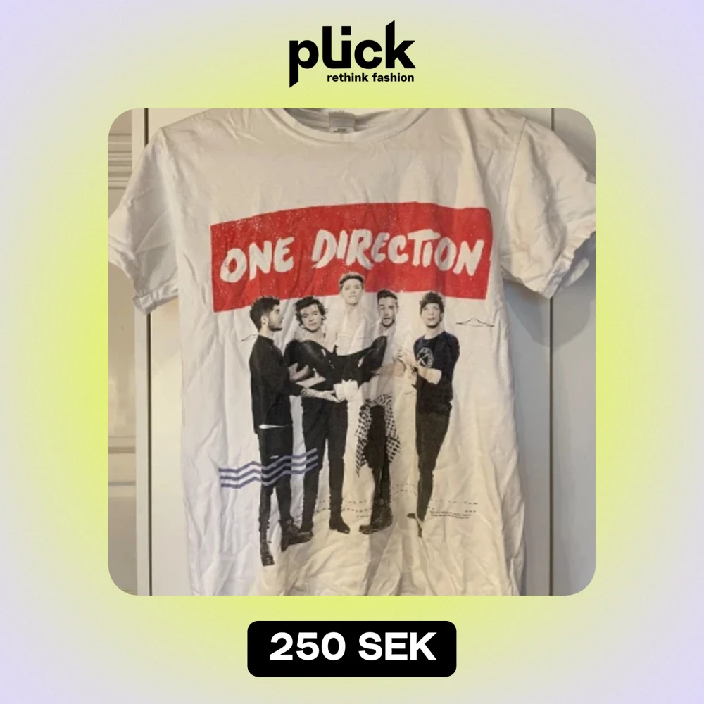 Snygg one direction t-shirt, använd ganska många gånger, vet inte riktigt vad märket är, men antar att det är någon typ av köpt merch från konsert