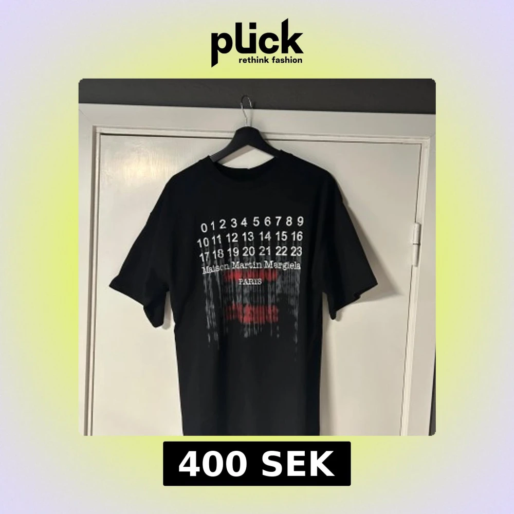 Cool svart t-shirt från Maison Martin Margiela med tryck av siffror och text på bröstet. Klassisk passform och rund halsringning. Perfekt för dig som gillar streetwear och designerplagg. Köpt i Portugal hos dem själva. Skriv vid frågor MVH VIGGO