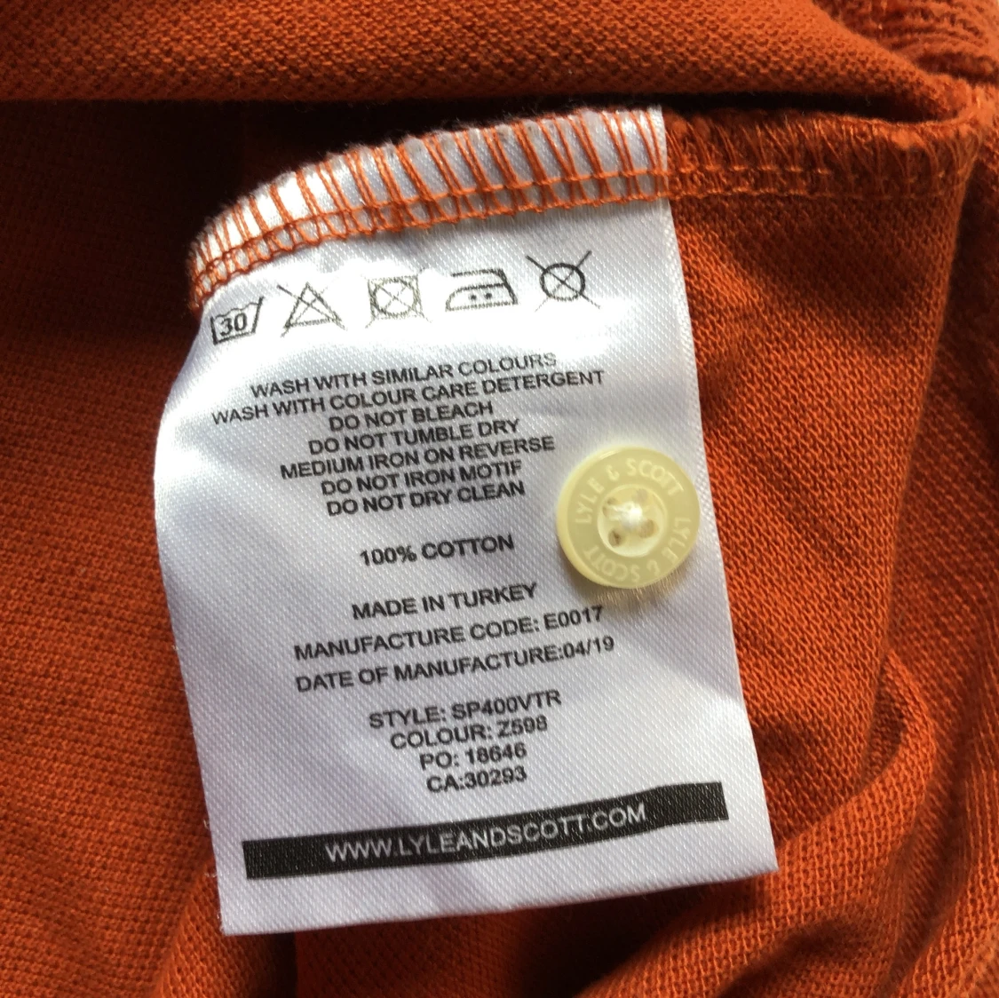 Snygg orange pikétröja från Lyle & Scott i 100% bomull. Klassisk krage med två knappar och den ikoniska gula fågeln broderad på bröstet. Perfekt för dig som gillar stilrena och sportiga plagg med en cool touch.