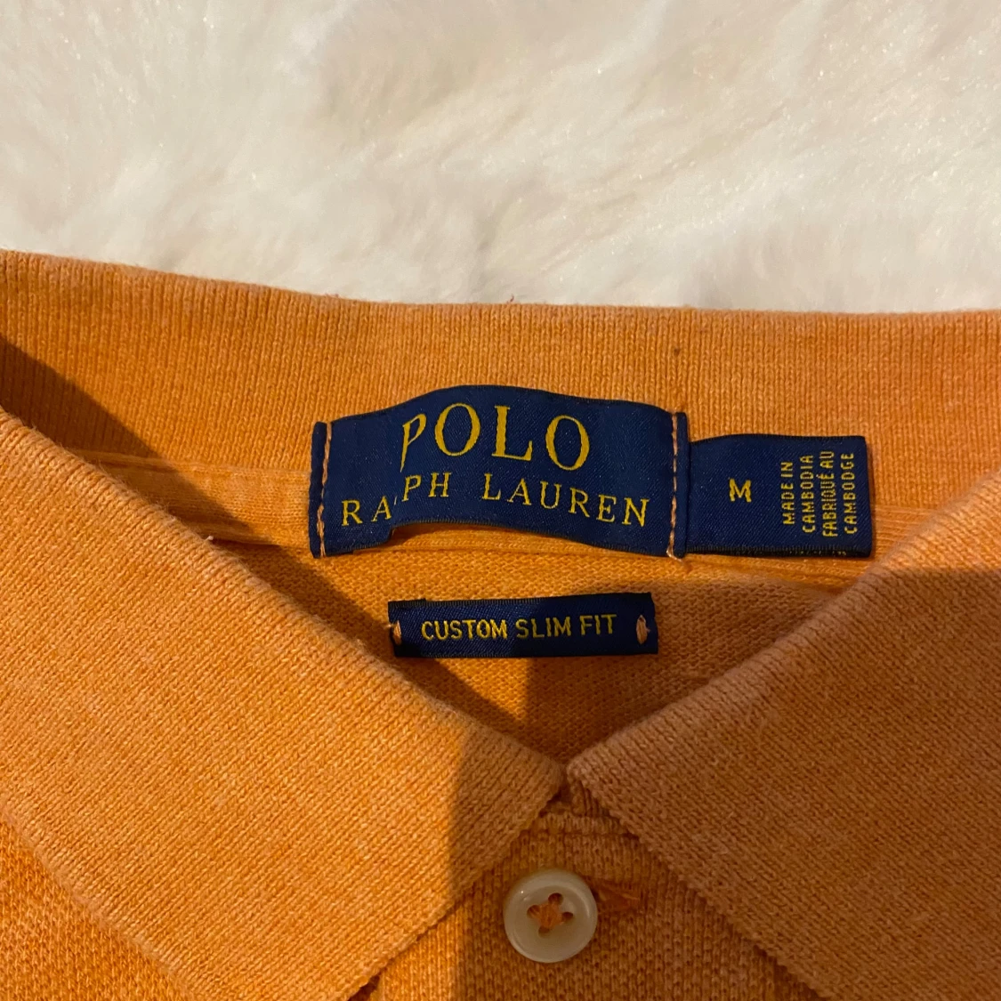 Persikofärgad pikétröja från Polo Ralph Lauren i bomull, custom slim fit. Klassisk krage med två knappar och blå broderad logga på bröstet. Perfekt för dig som gillar stilren och sportig vibe.