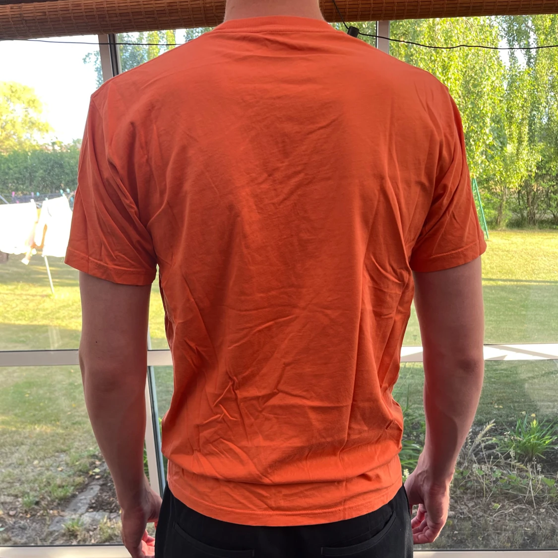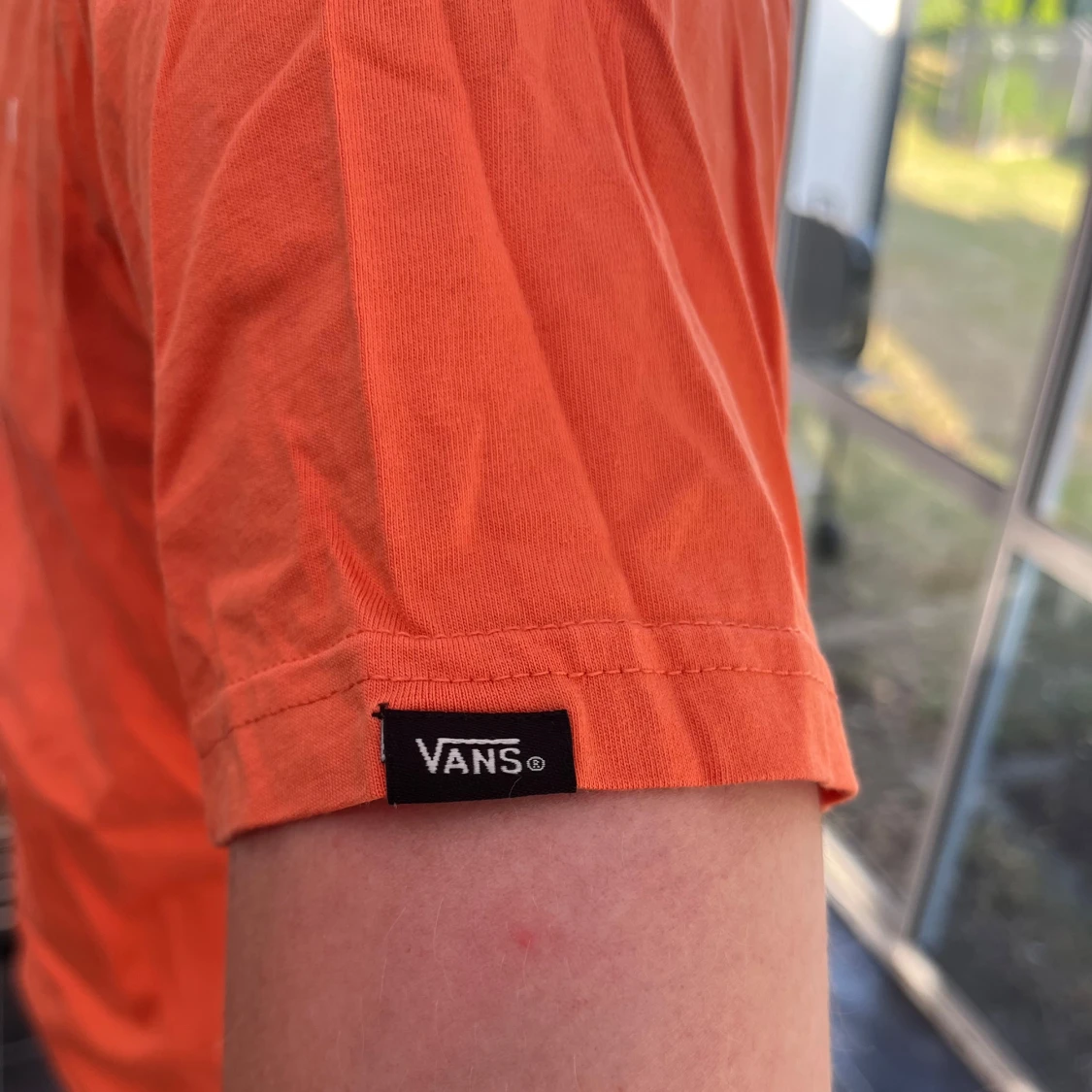 Snygg orange t-shirt från Vans i klassisk modell. T-shirten har korta ärmar, rund hals och liten Vans-logga på bröstet samt en etikett på ärmen. Tillverkad i 100% bomull, perfekt för en chill och avslappnad stil.