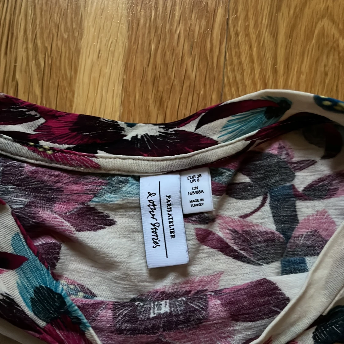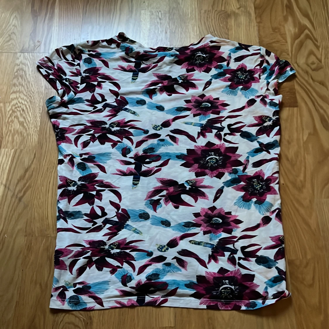 Säljer en snygg blommig t-shirt från & Other Stories i storlek 38. T-shirten är tillverkad i 100% bomull, vilket gör den både bekväm och andningsbar.