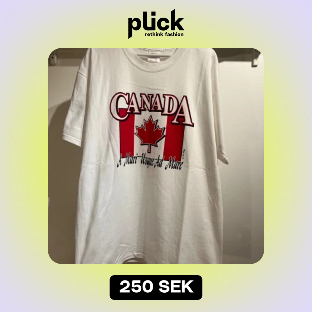 Vintage Vit 90s Canada T-shirt från Le Pays International. Made in USA. Storlek XL se mått: bredd 57 cm längd 80 cm Det finns en minimal fläck på uppe på höger axel se bild. Pris kan diskuteras!