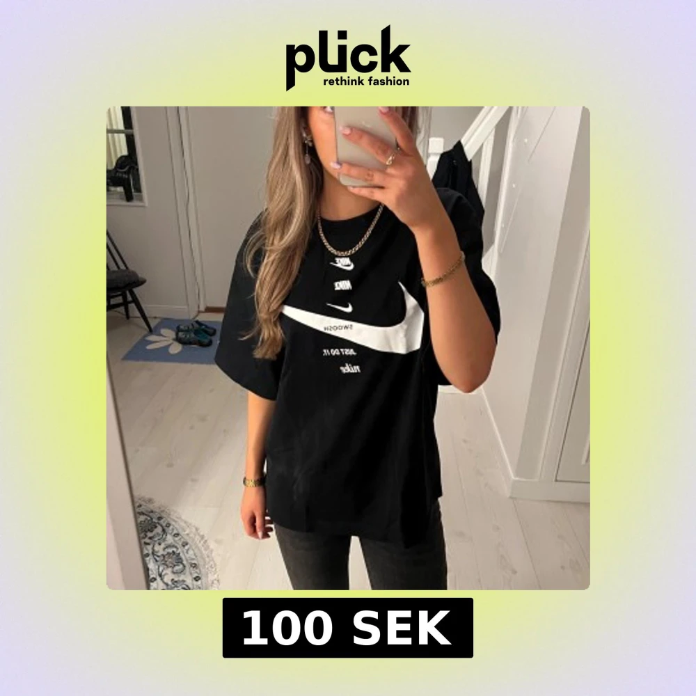 Svart t-shirt från Nike med loggan fram. Oversized modell. Pris kan alltid diskuteras❤️