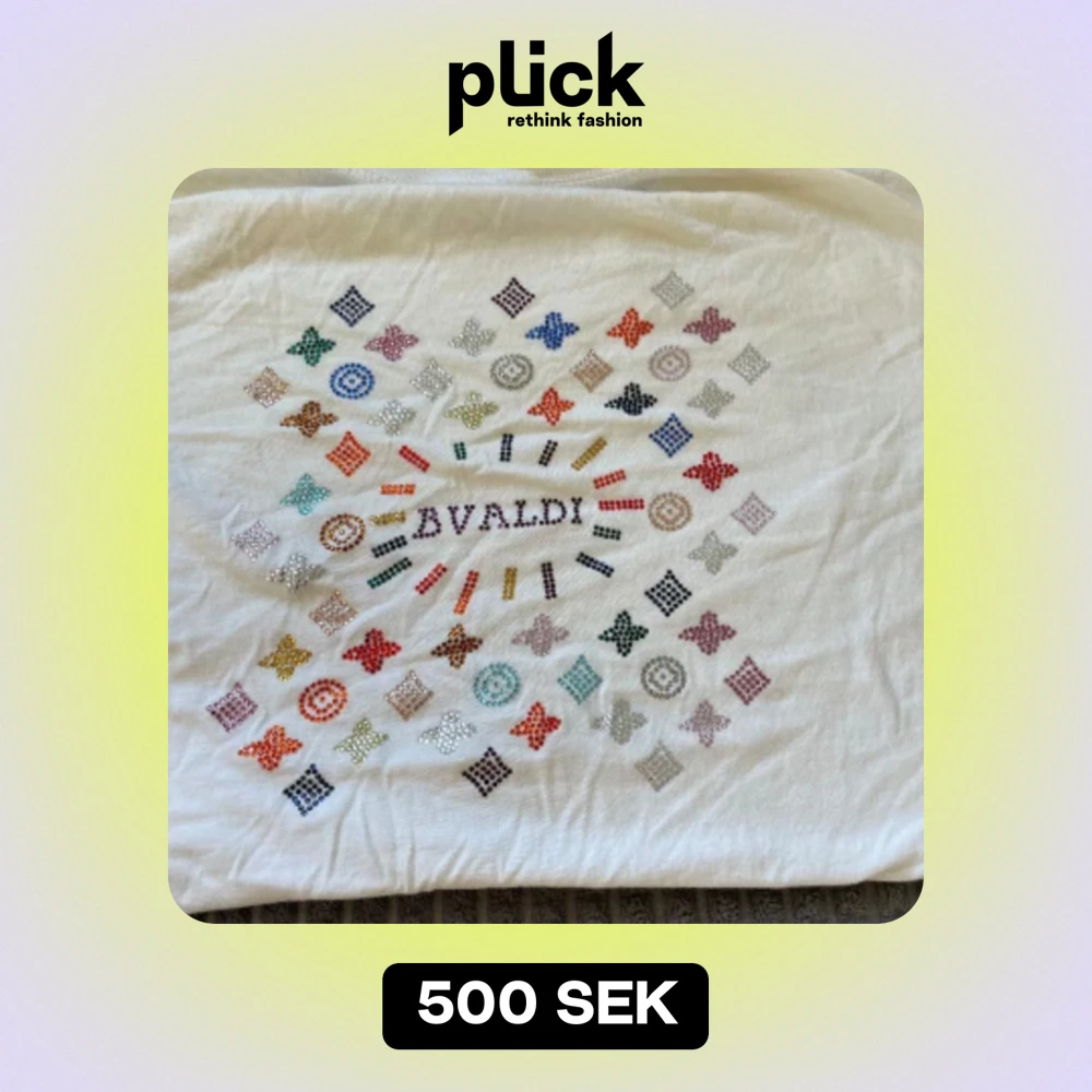 Vitt bvaldi tröja köpt från pop up store med ett jätte fint tryck där back säljer för den är för stor alla paljetter är kvar på