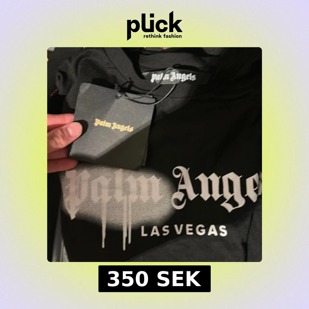 L-M Svart t-shirt från Palm Angels med stor vit Las Vegas-logga framtill i spray paint-stil. Klassisk rund hals och korta ärmar. T-shirten har en urban vibe och är tillverkad i mjuk bomull. Taggarna sitter kvar och trycket är riktigt snyggt. pris kan diskuteras