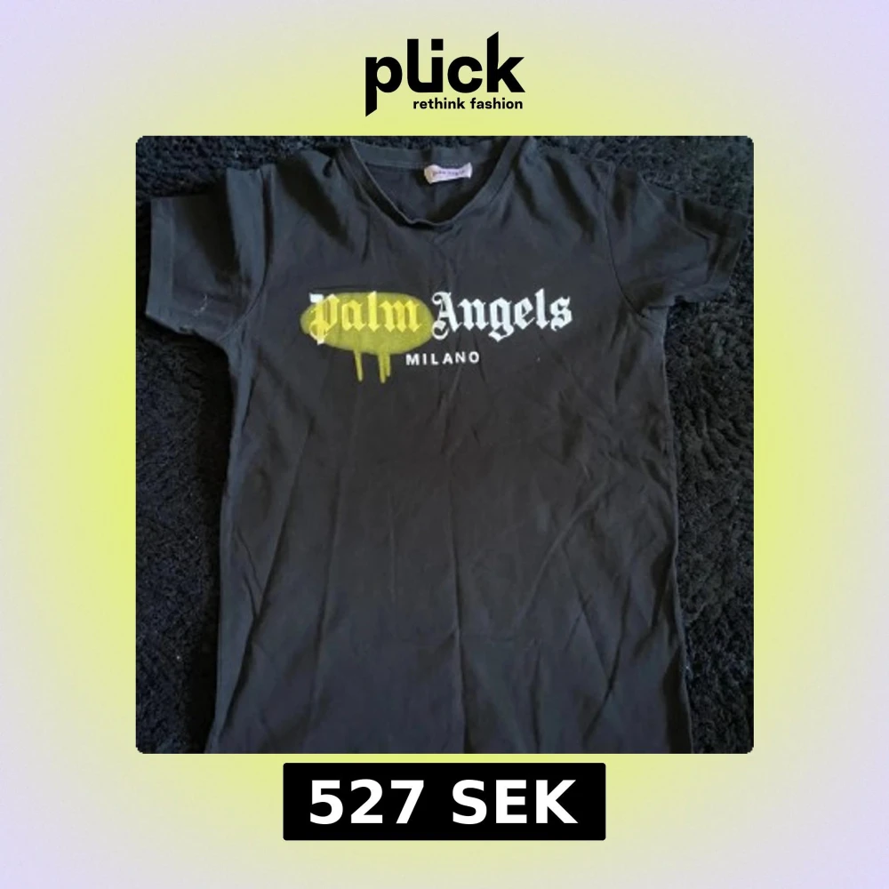 Svart t-shirt från Palm Angels med Milano-tryck på bröstet. Coolt grafiskt tryck där 'Palm' är markerat med gul färg och drip-effekt, resten av texten i vitt. Klassisk rund hals och korta ärmar. Perfekt för dig som gillar streetwear och snygga loggor.
