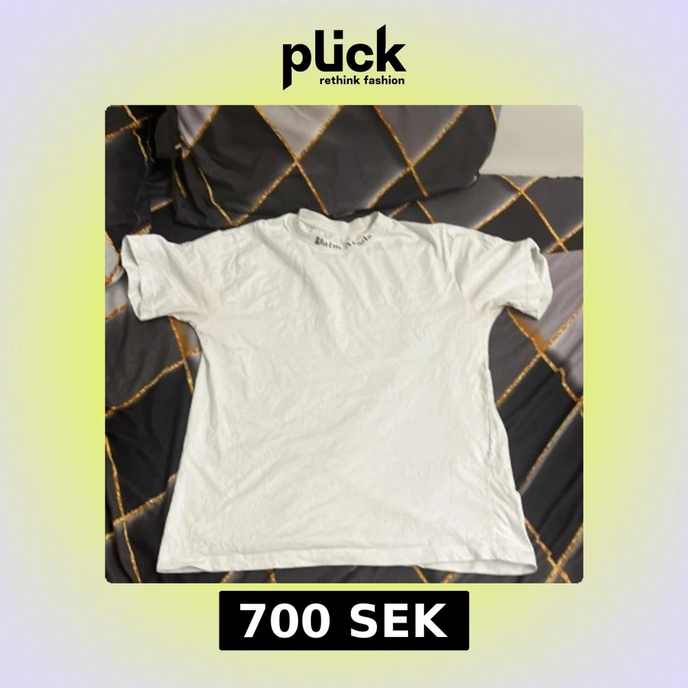 Säljer en Vit t-shirt från Palm Angels med stor svart logga där back.haft länge men har inte använts mycket. Helt äkta storlek S men kan passa M också!! Vi köp av den varan med en annan i mitt konto så får ni ett erbjudande pris av 400kr!