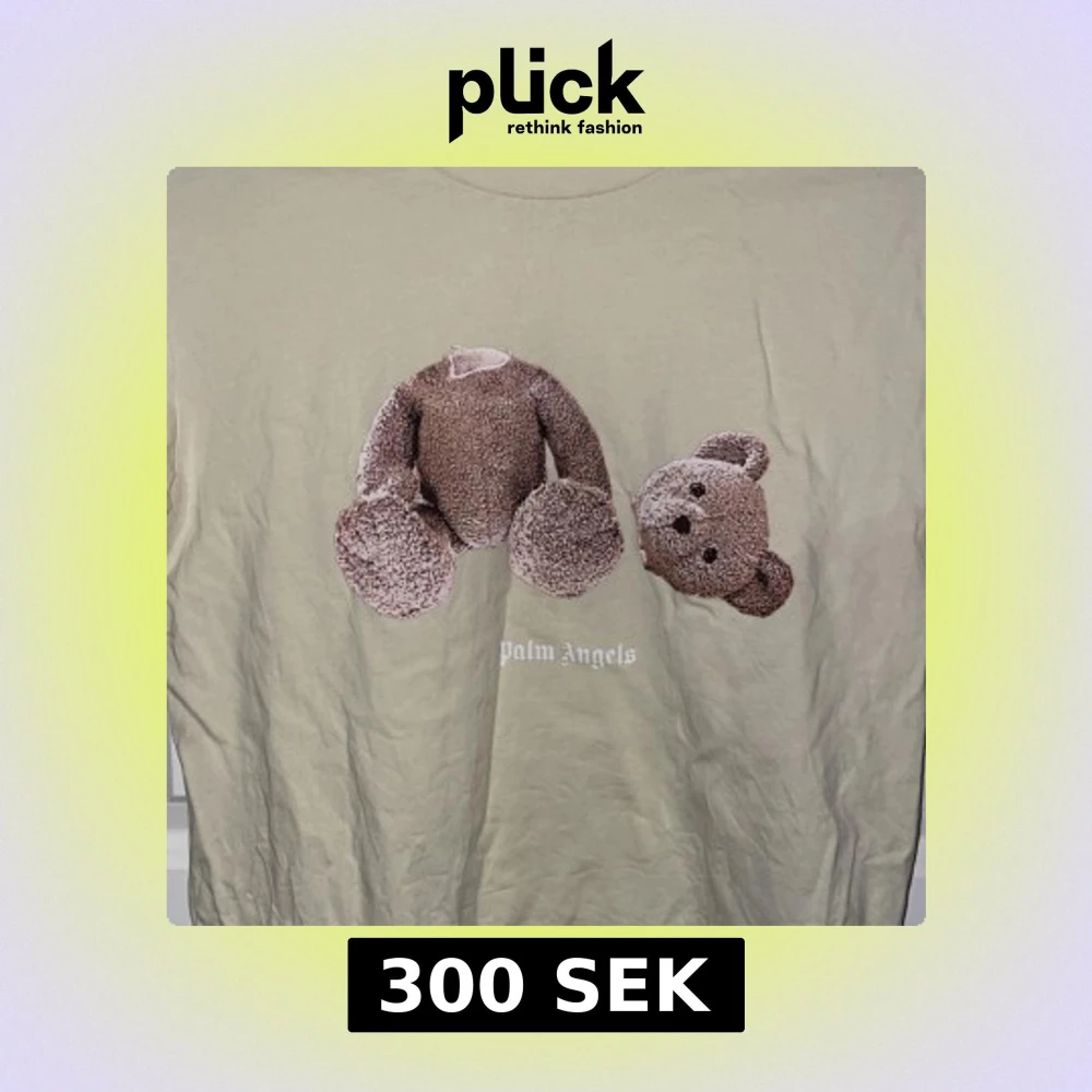 t-shirt i beige med stort tryck av en dekonstruerad nalle på framsidan och Palm Angels-logga i vitt på både fram- och baksidan. Klassisk rund hals och korta ärmar. Materialet är mjuk bomull, perfekt för en chill streetwear-look.