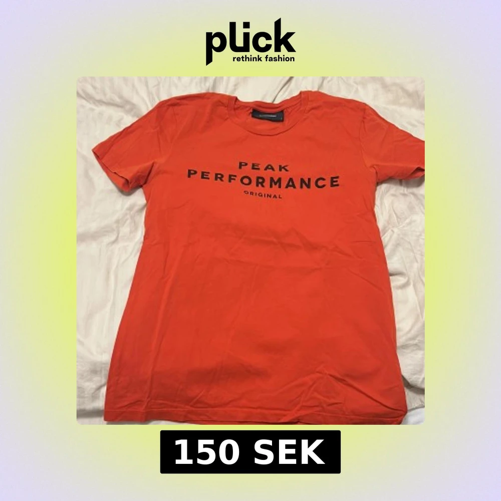 Snygg orange t-shirt från Peak Performance med svart text på bröstet. Perfekt för en casual look. Gjord i mjukt material för extra komfort.