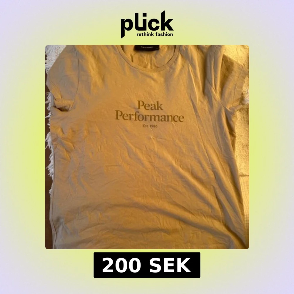Snygg beige t-shirt från Peak Performance med klassisk logga och texten 'Est. 1986' framtill. T-shirten har rund halsringning och korta ärmar, perfekt för en avslappnad och stilren look. Tillverkad i mjuk bomull för skön komfort.