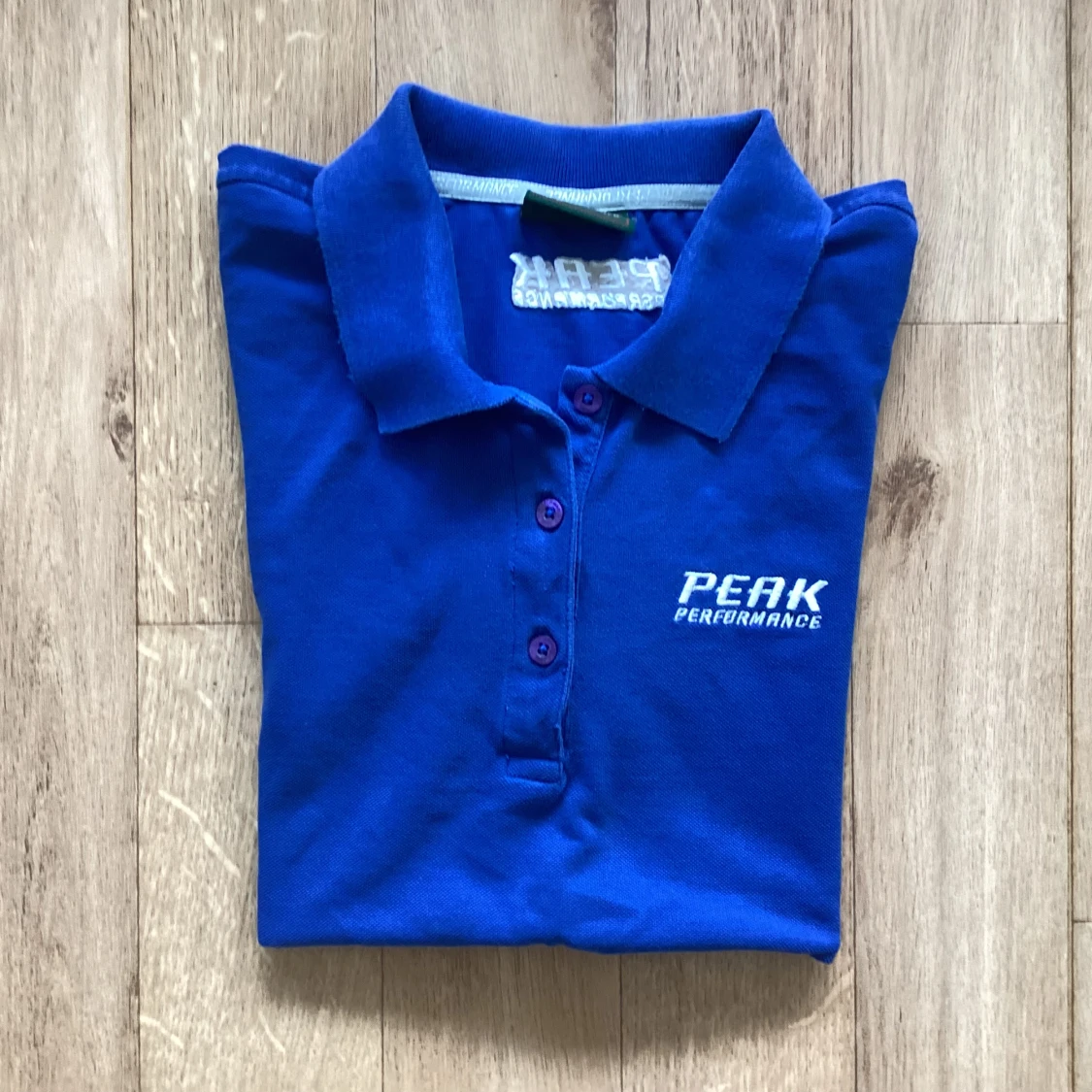 Snygg blå pikétröja från Peak Performance med klassisk krage och knappar framtill. Broderad logga på bröstet, ärmen och nacken. Skön passform och tillverkad i mjuk bomull. Perfekt för en sportig och avslappnad stil.