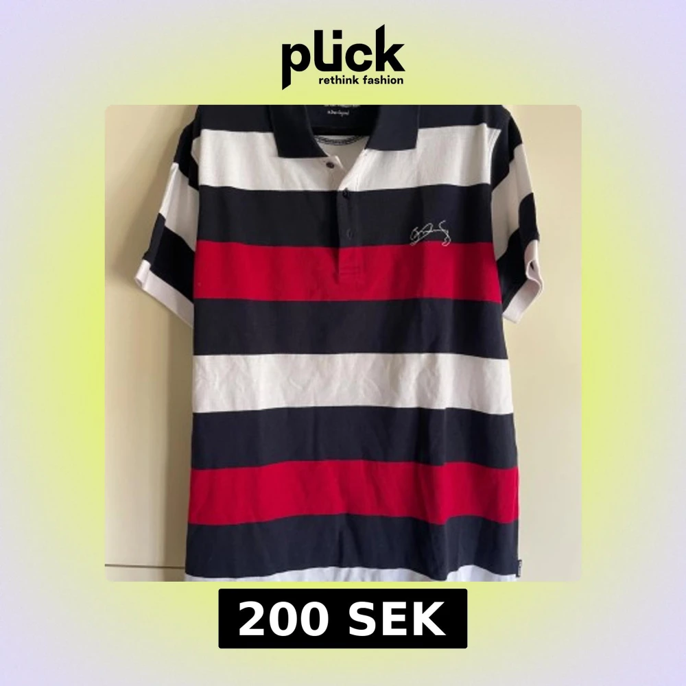 Snygg pikétröja från Salming i bomull med breda ränder i svart, vitt och rött. Klassisk krage med knappar och broderad logga på bröstet. Perfekt för en sportig och avslappnad stil.