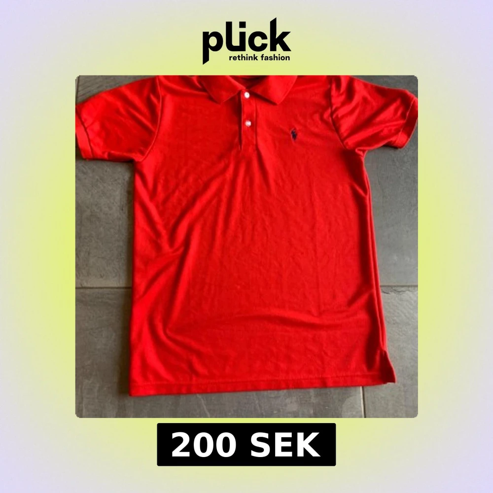 Snygg röd polo t-shirt från Ralph Lauren med klassisk krage och två knappar framtill. T-shirten har korta ärmar och den ikoniska blå Polo-loggan broderad på bröstet. Tillverkad i mjuk bomull som är skön mot huden. Perfekt för en chill och stilren look. Storleken är M och neck tagen är bort klippt och därav priset