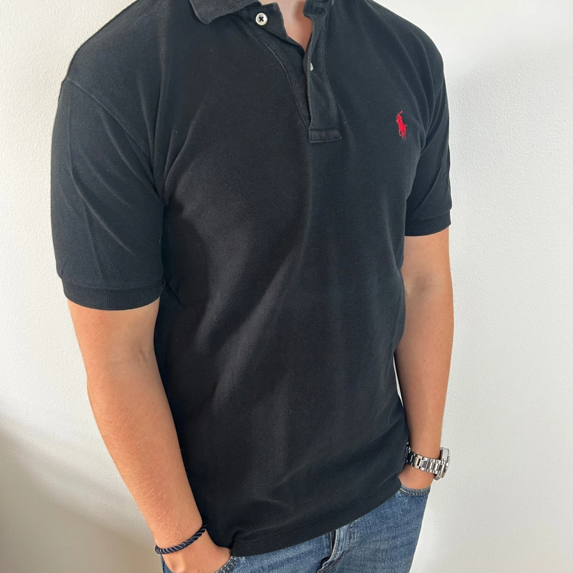 Svart Ralph Lauren piké | fint skick | äldre modell, tröjan är något längre baktill | modellen är ca 180 | hör av dig om du har funderingar🙌