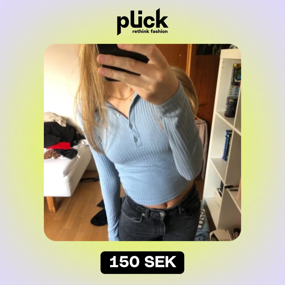 Jättesöt ljusblå långärmad tröja med knappar 🩵perfekt till ett par baggy jeans och utsläppt hår 🩵från Ginatricot ursprunligen men knappt använd
