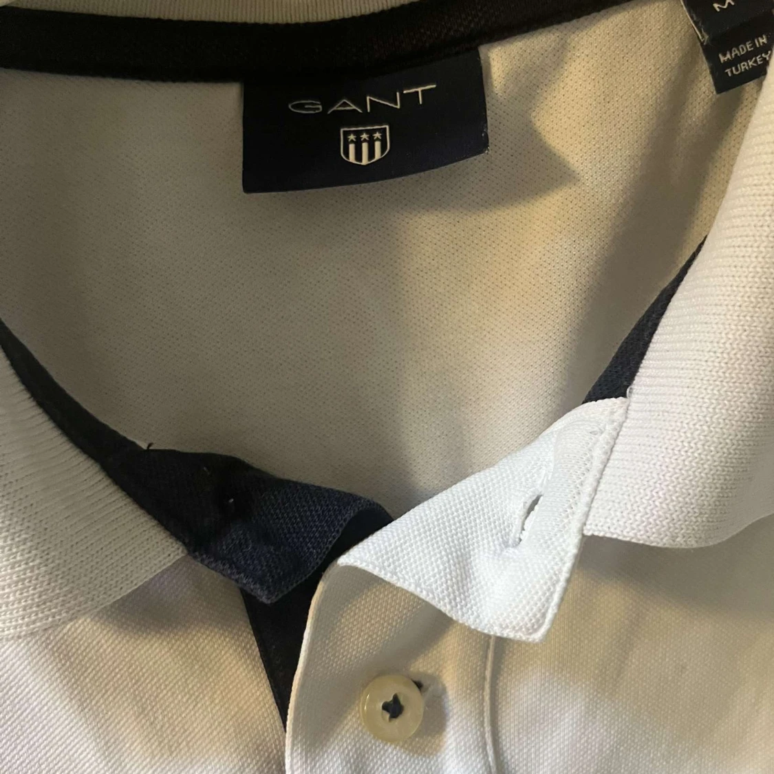 Säljer en stilren vit pikétröja från GANT