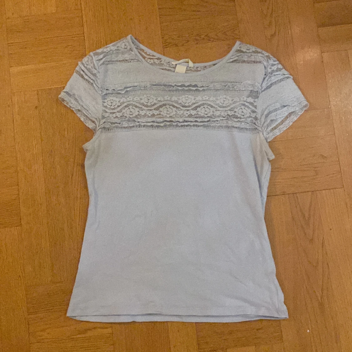 Säljer en söt ljusblå tröja med spets! Köparen betalar frakt!