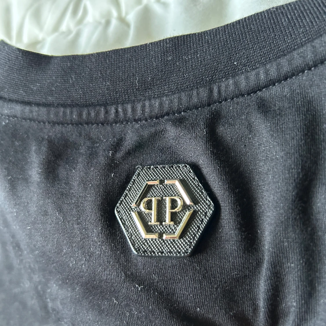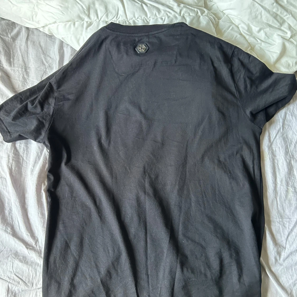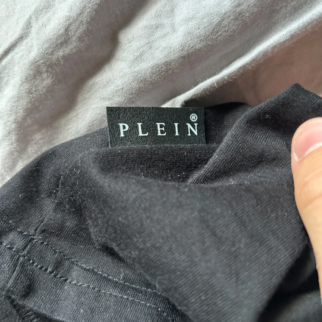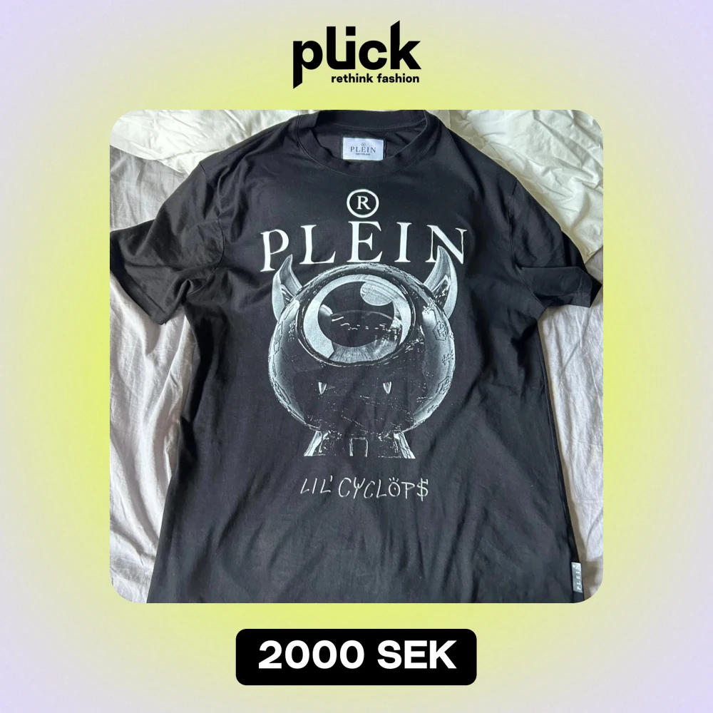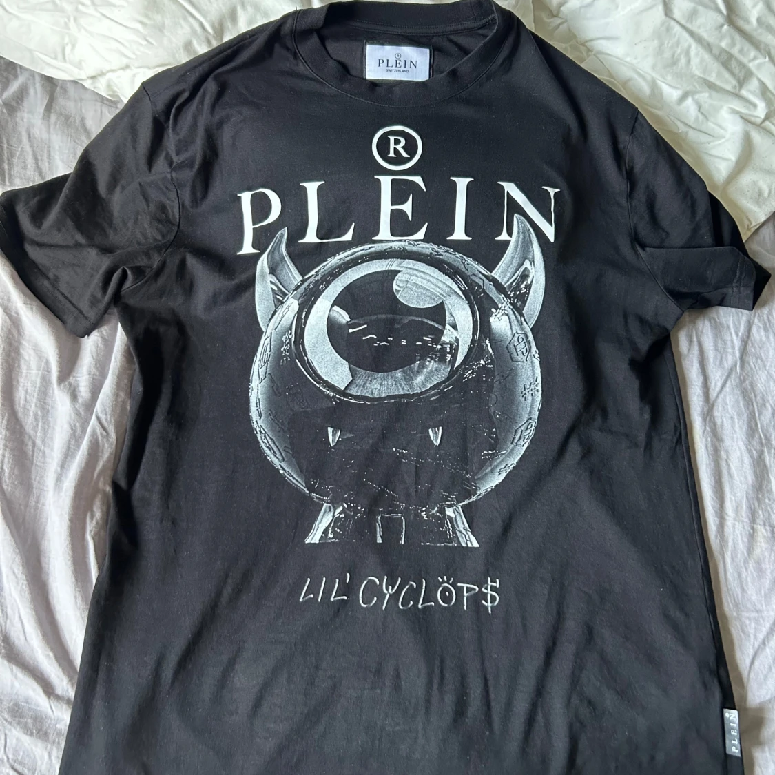 Säljer en svart t-shirt från Plein med ett coolt 'Lil' Cyclop$' tryck på framsidan. T-shirten är kortärmad och har en liten logga på baksidan nära nacken. Perfekt för en avslappnad stil eller fest. Skön och stilren design!