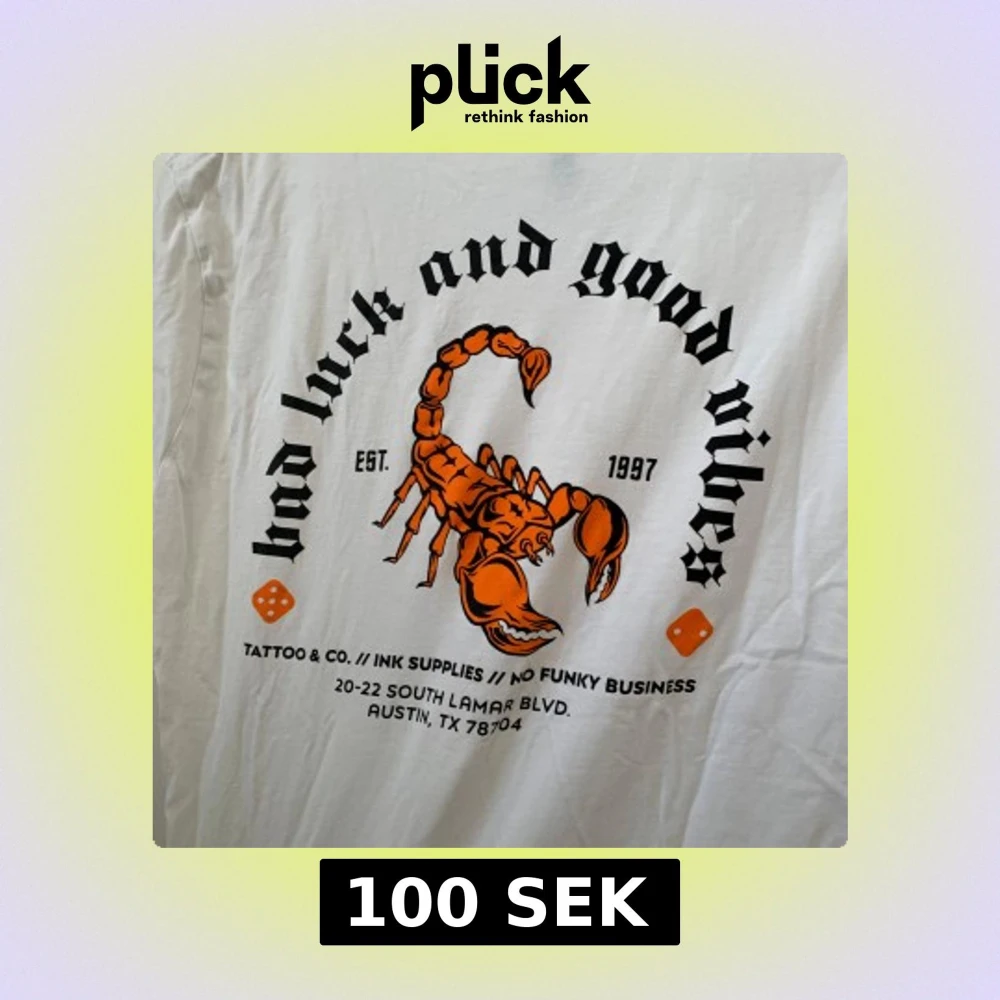 SĂ€ljer denna vita t-shirt frĂ„n H&M med ett coolt Scorpion-tryck. Perfekt inför sommaren!âïžT-shirten Ă€r gjord i mjuk bomull och har anvĂ€nts nĂ„gra gĂ„nger innan - men har inga defekter. Tröjan passar bĂ„de tjejer och killar - passar storlek S. đ€đâïž