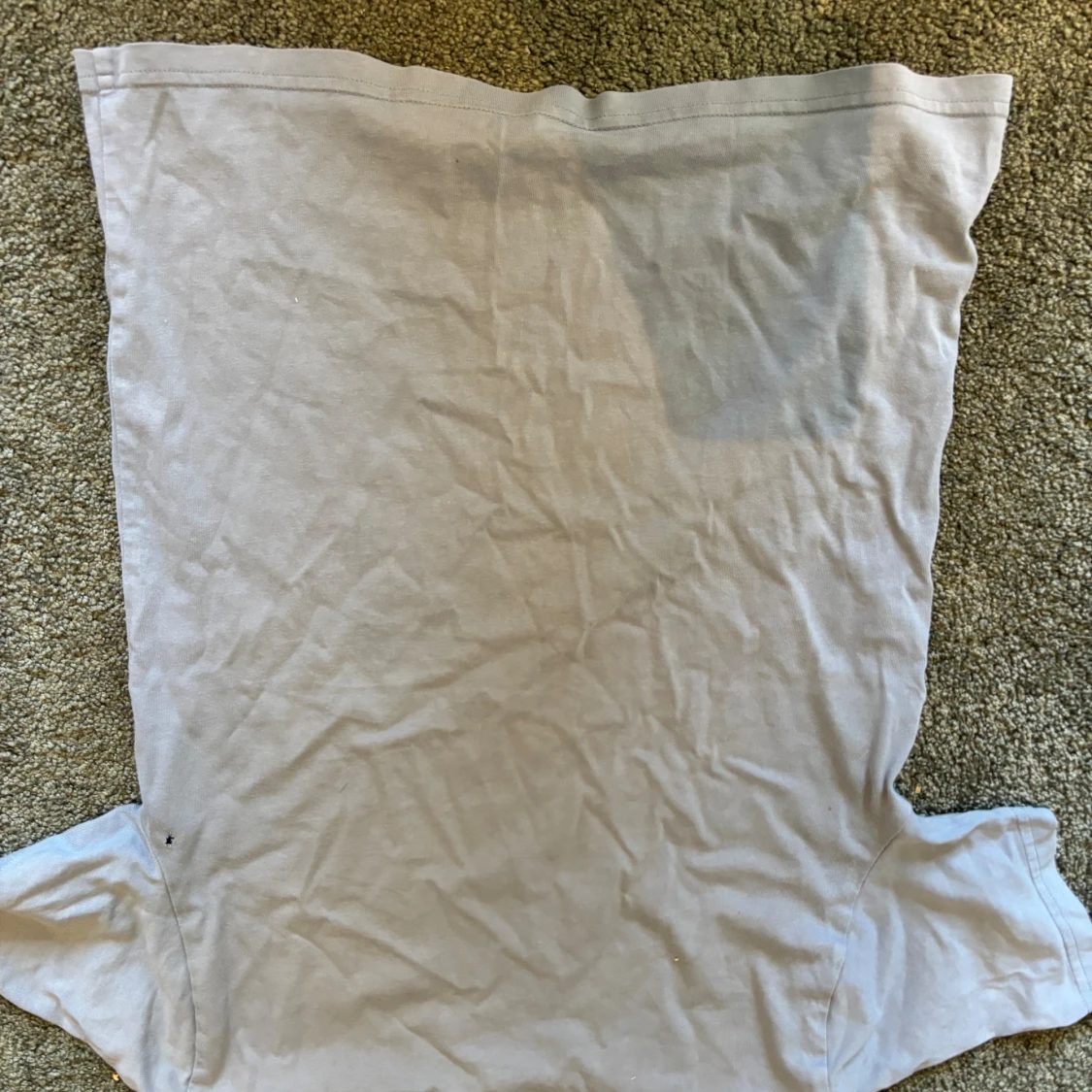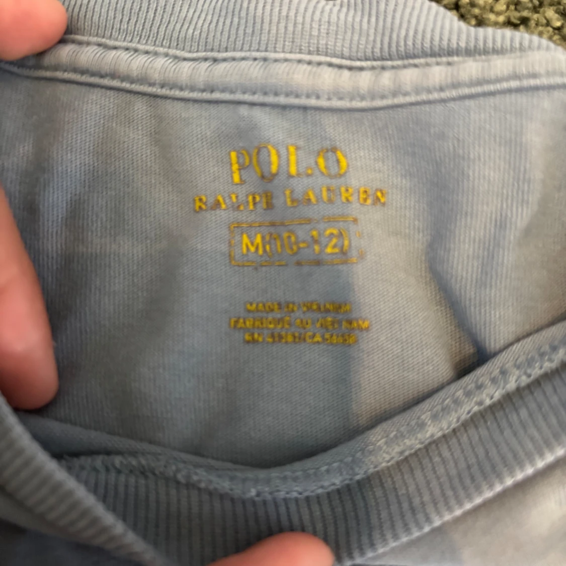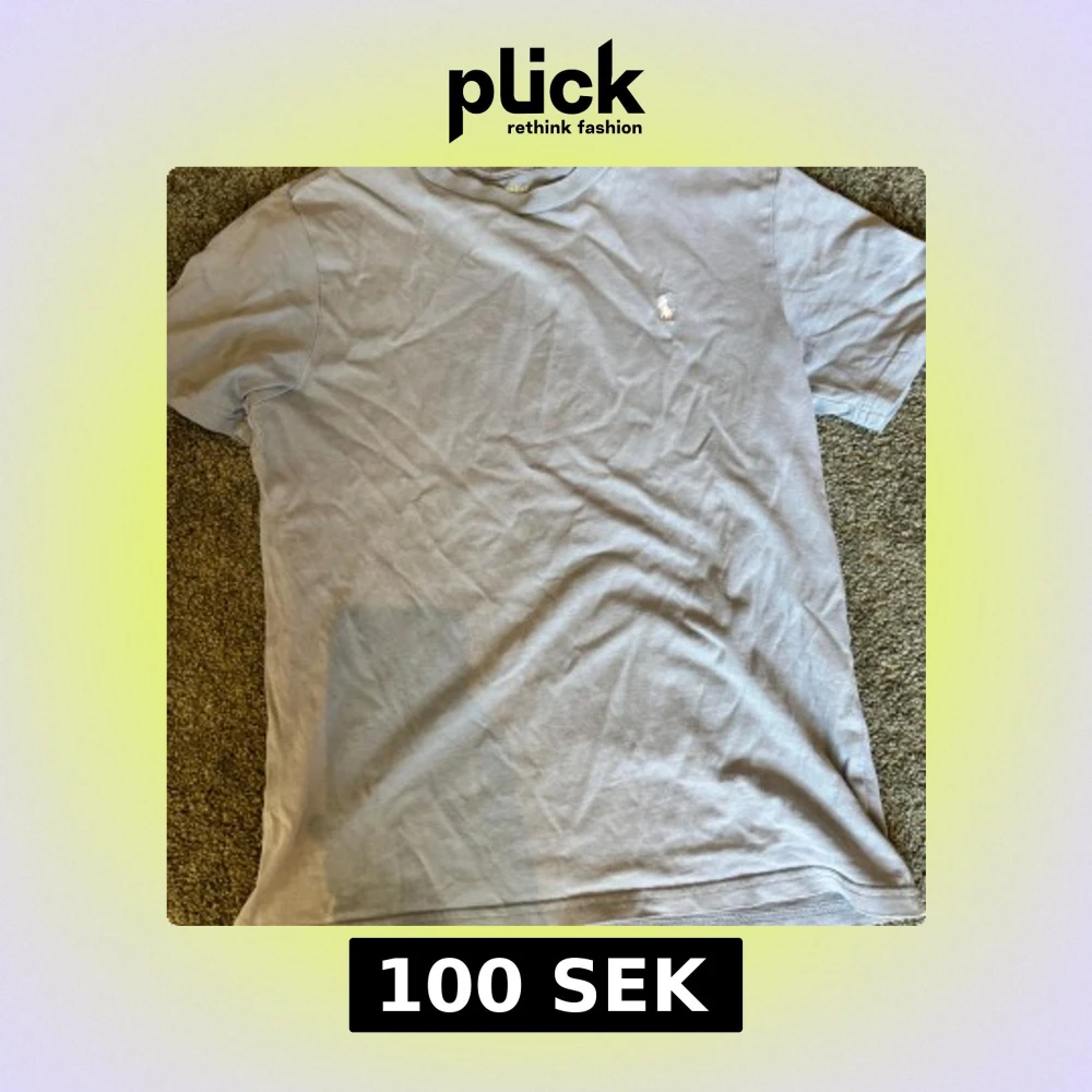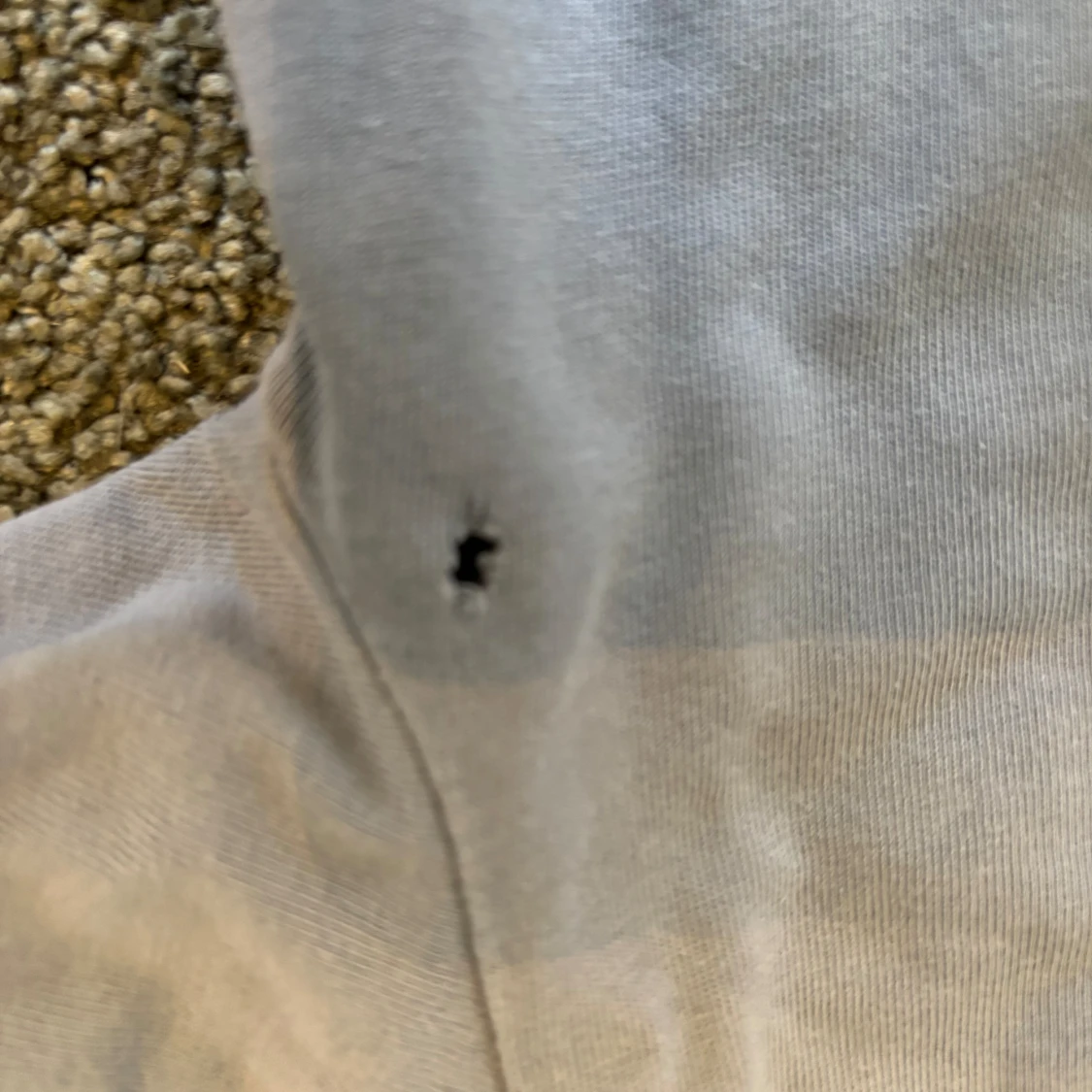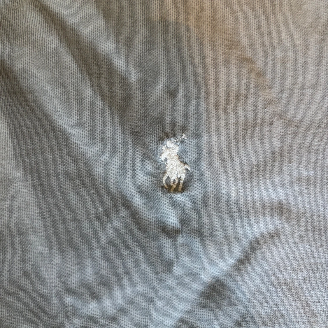 Fin, bra ljusblå polo T-shirt. Enda felet är ett litet hål precis under armhålan. Som man kan se på en av bilderna .Därför säljer lite billigare.🙃