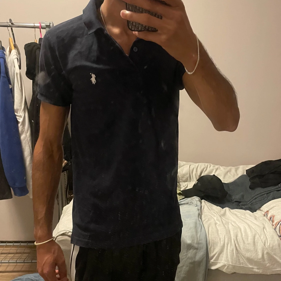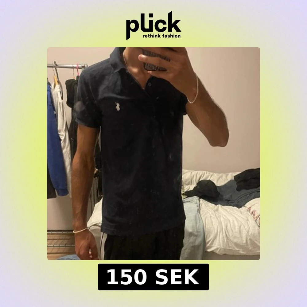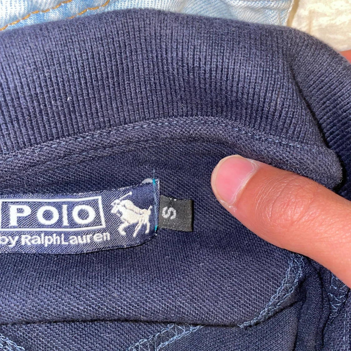 Säljer en klassisk mörkblå pikétröja från Polo Ralph Lauren i storlek S. Tröjan har korta ärmar, krage och knäppning framtill samt den ikoniska broderade loggan på bröstet. Tillverkad i mjuk bomull som är skön att bära hela dagen.