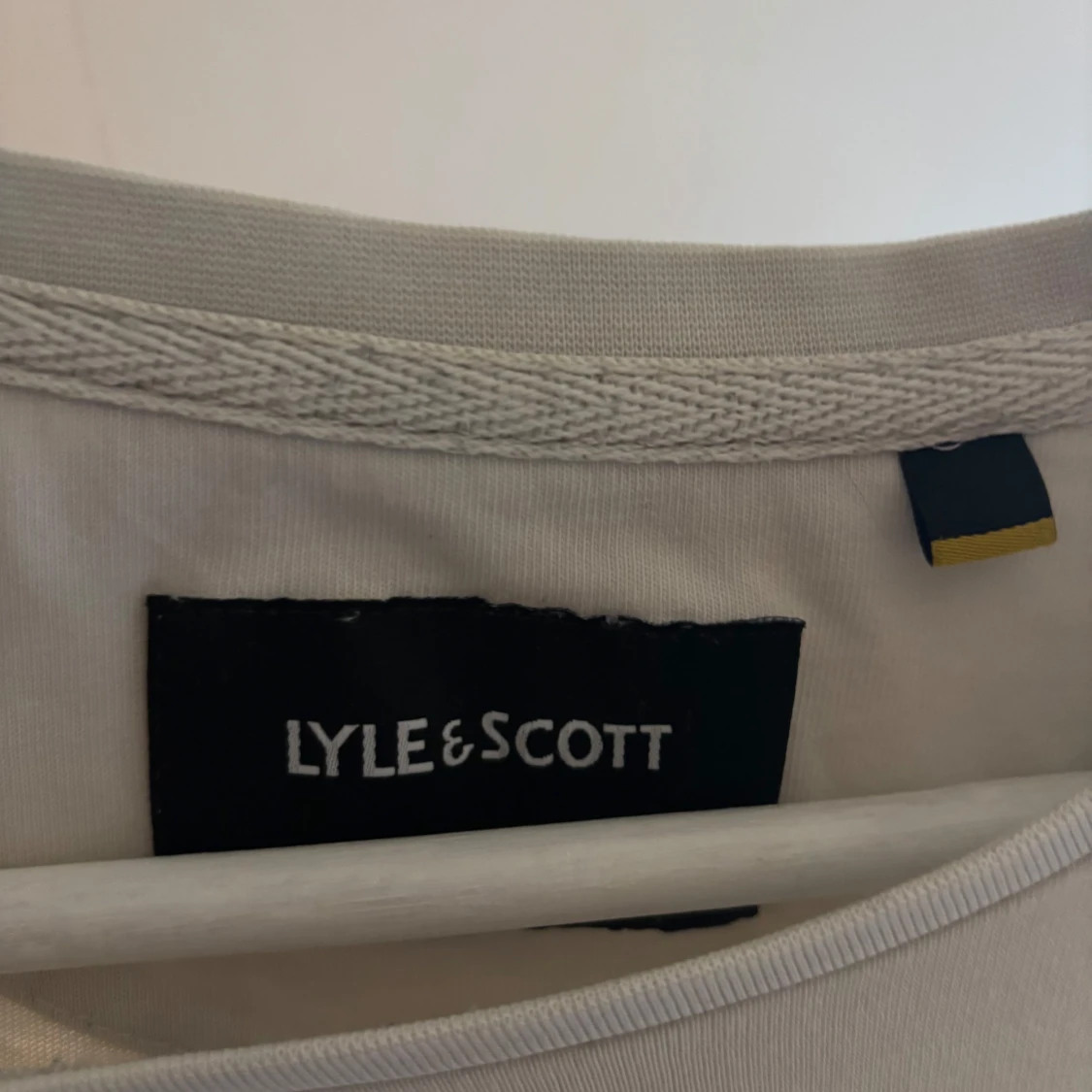 Snygg vit t-shirt från Lyle & Scott. T-shirten har rund hals och korta ärmar, perfekt basic-plagg. Något eller 1-2 år gammal. ✅ Nypris: 399 kr