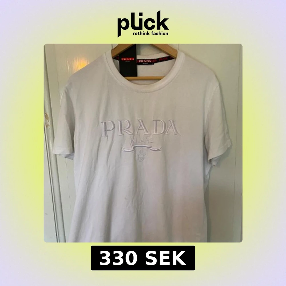 Säljer en vit t-shirt från Prada med broderad logga framtill. Klassisk rund halsringning och korta ärmar. Perfekt för dig som gillar stilrena och exklusiva plagg. T-shirten är i mjuk bomull och har en snygg passform. Står storlek L, men skulle säga den pasdar M bäst. Fick i födelsedagspresent förra året, kommer med lappar, qr koden tar dig till Prada hemsidan 💯
