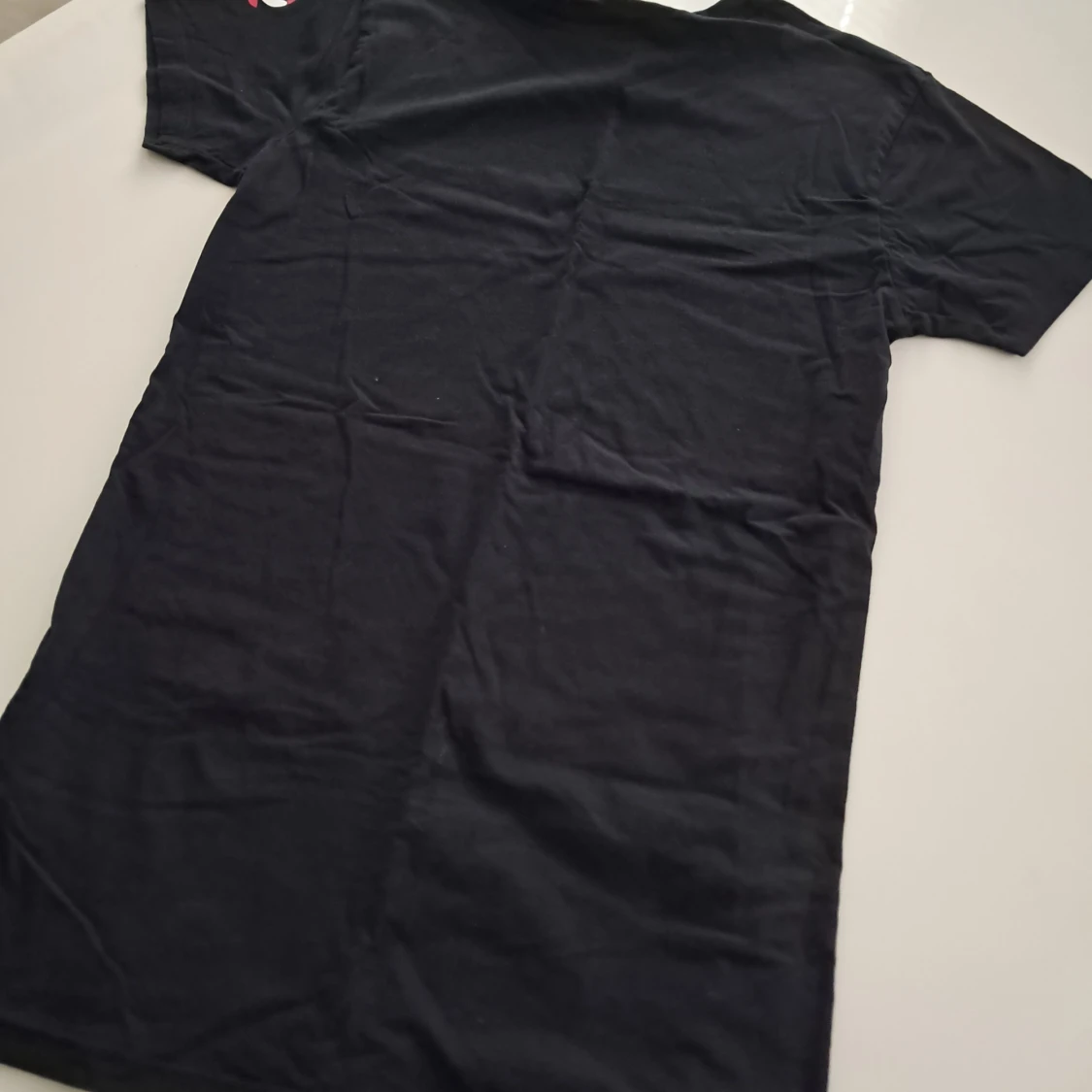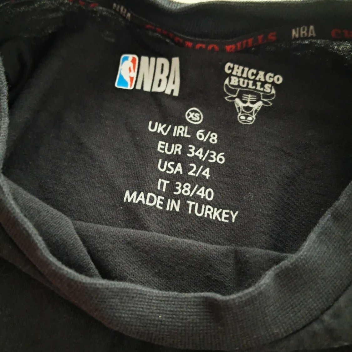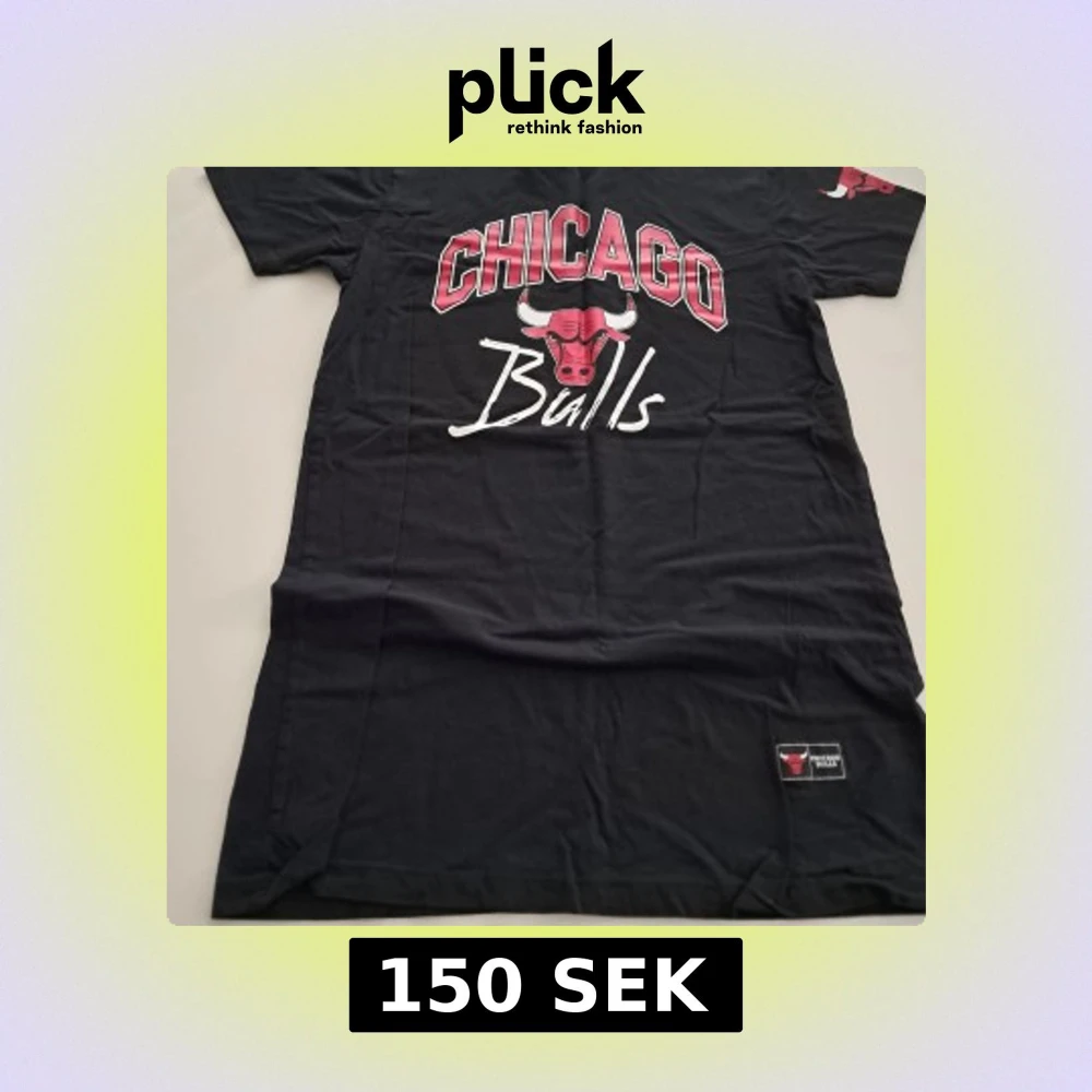 Svart t-shirt med Chicago Bulls tryck i rött och vitt framtill. Klassisk passform med korta ärmar och rund hals. Tillverkad i mjuk bomull, perfekt för dig som gillar basket och streetwear. Officiell NBA-logga på insidan och Bulls-märke nertill.