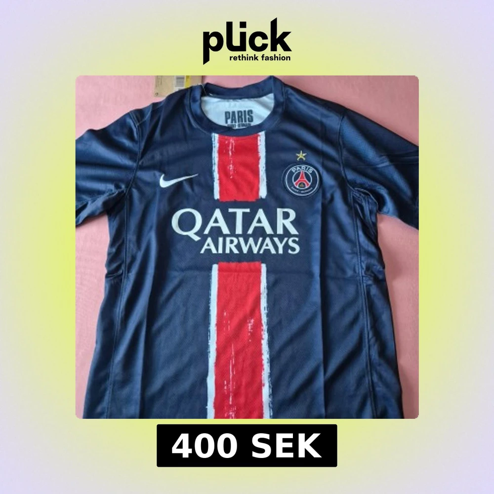 Paris Saint-Germain fotbollströja från Nike i marinblått med en bred röd vertikal rand på framsidan och vita detaljer. PSG-logga med guldstjärna på bröstet, Qatar Airways tryck och klassisk rund hals. Tillverkad i lätt, ventilerande polyester för maxad komfort på planen.