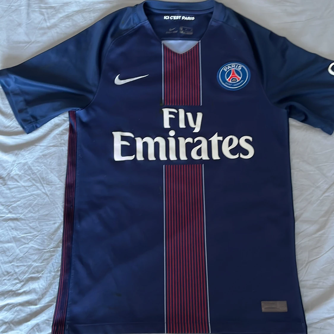 Säljer en snygg tröja från PSG tröjan är i jätte bra skick men har fått nån grön följ k och därför säljs för bättre pris