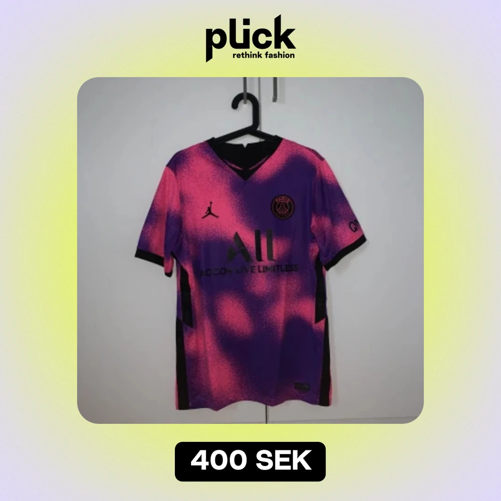 PSG tröja i storlek M. Jordan x PSG, fjärdeställ säsongen 20/21. Nyskick, tröjan har inte kommit till användning mer än 1 gång. Självklart är tröjan autentisk.