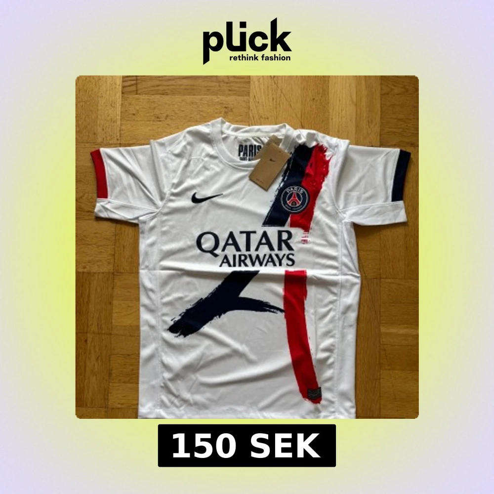 Paris Saint-Germain fotbollströja från Nike i vit polyester med korta ärmar. Framsidan har tryck med Qatar Airways, PSG-emblem och penseldrag i mörkblått och rött. Snygga detaljer på ärmsluten i rött och mörkblått. Perfekt för dig som älskar fotboll och PSG.
