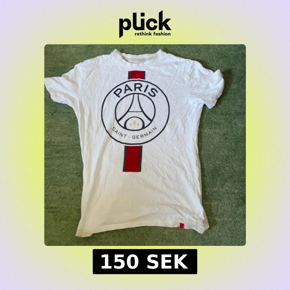 Vit t-shirt från Paris Saint-Germain med stor svart logga och röd detalj framtill. Klassisk rund hals och korta ärmar. Perfekt för dig som älskar fotboll och vill visa vilket lag du supportar. Tillverkad i mjuk bomull för skön känsla.