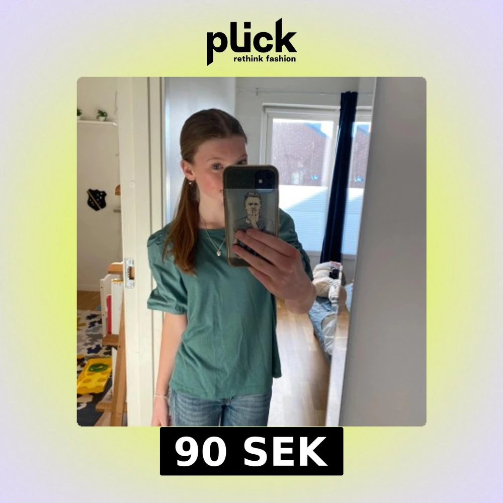 jättefin t-shirt med puffärmar i en turkos aktig färg💕står strl L men den sitter bra på mig som brukar bära xs så passar bra på s och m också, lite nopprig men inget som syns när man har den på💕