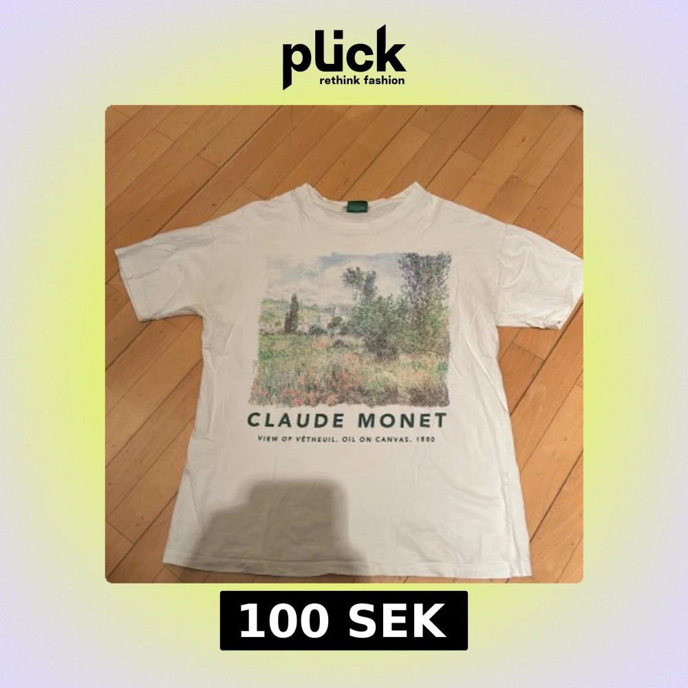 Vit t-shirt från Pull&Bear med ett vackert tryck av Claude Monets målning. Tröjan är i storlek M. Va inte rädd för att ställa frågor.