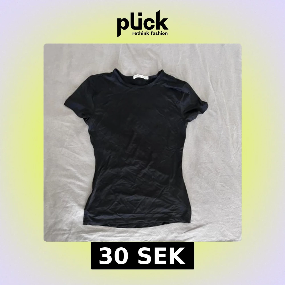 En stilren svart t-shirt från Pull&Bear i storlek S. Modellen är figurnära med korta ärmar och rund halsringning. Perfekt basplagg att matcha med allt. Materialet känns mjukt och lätt mot huden.