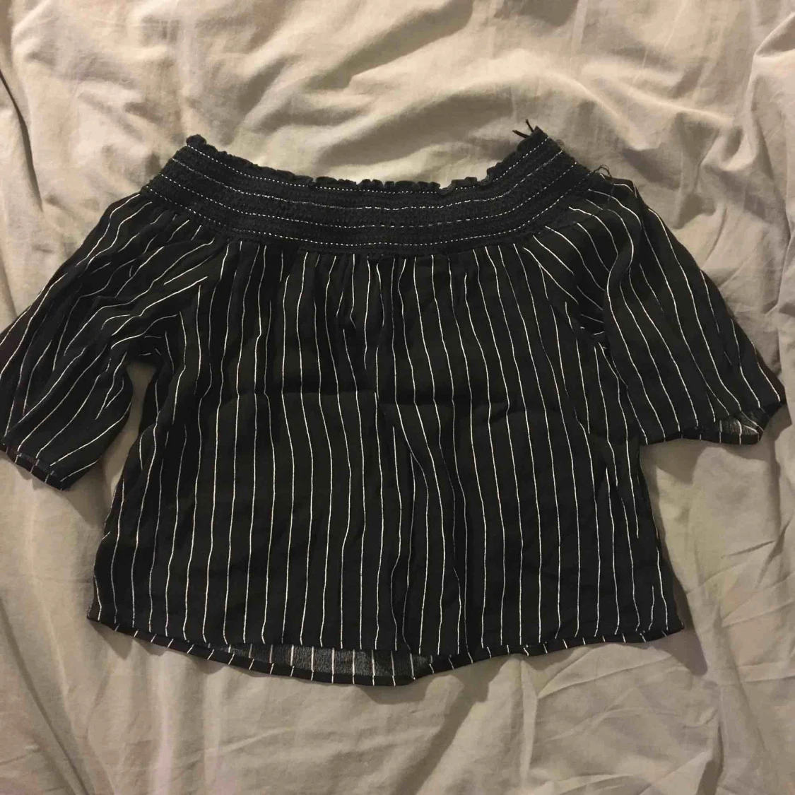 Svart och vit randig offshoulder T-shirt. Bra skick även om den är använd. Funkar till det mesta👍🏼🌼