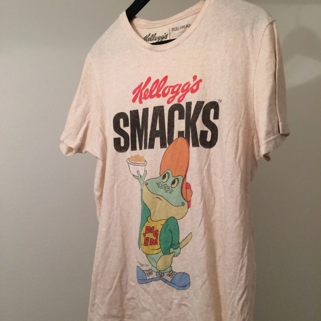 Naturfärgad T-shirt med "Kelloggs" tryck från Pull & Bear. Är en herrskjorta i storlek M (38) men passar nog en Large också! Frakt eller upphämt