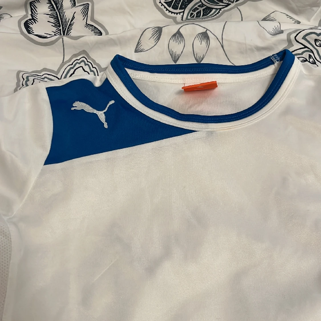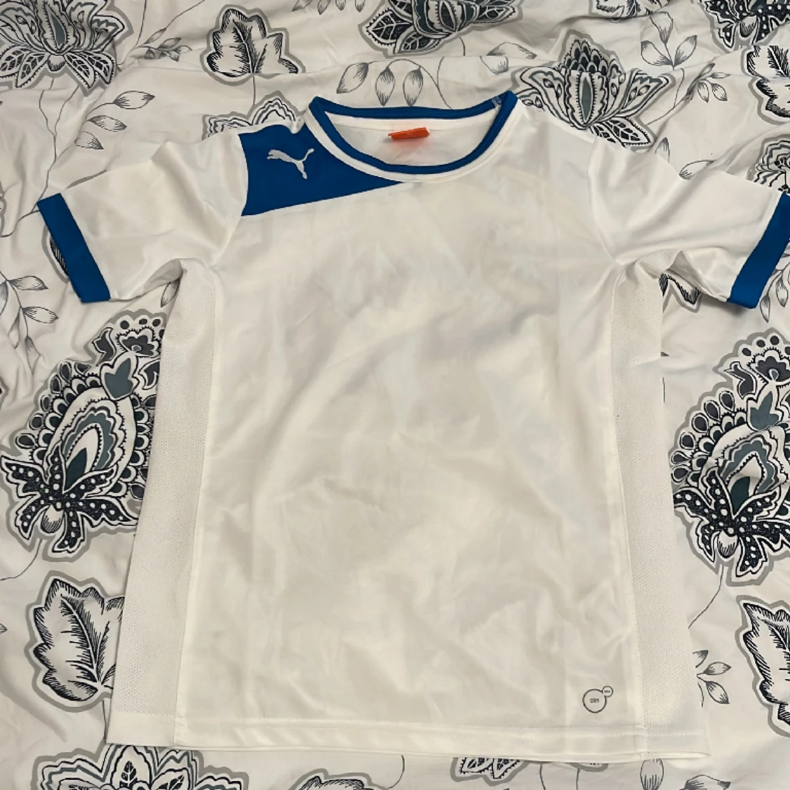 En nöstan oanvänd vit träningstshirt från Puma i storlek 152