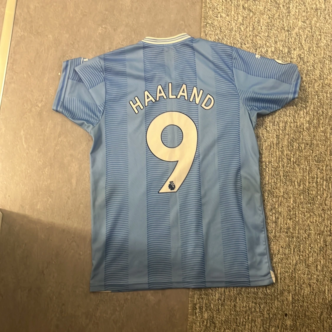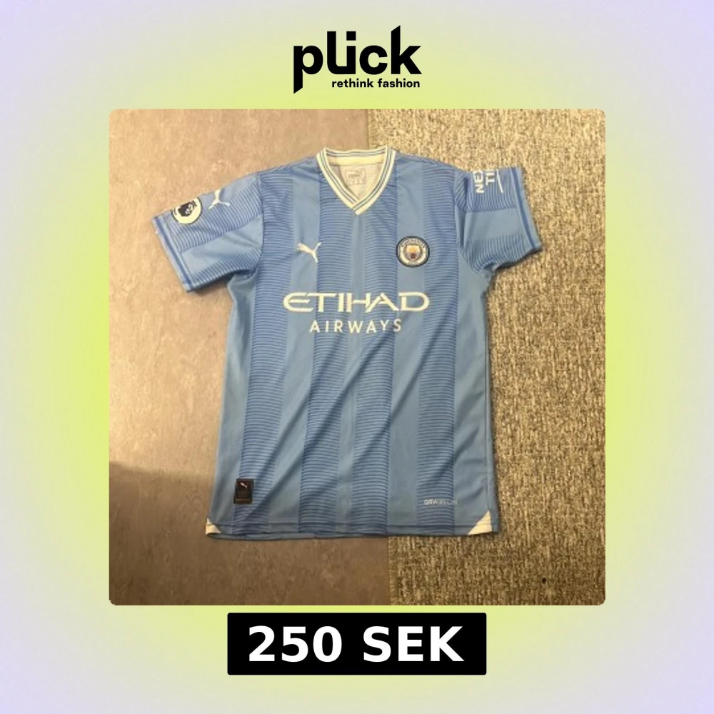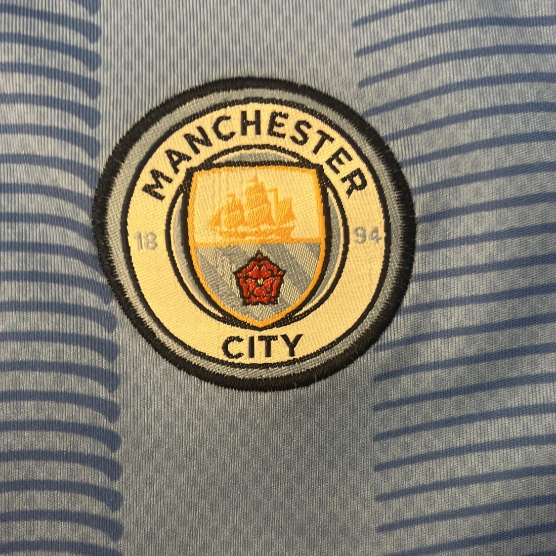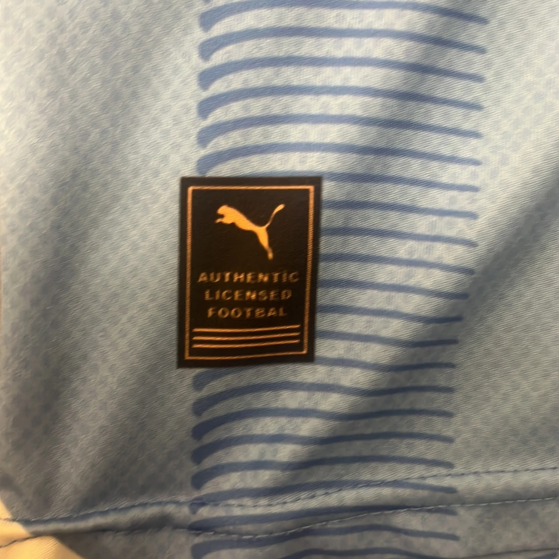 Manchester Citys officiella matchtröja från Puma i ljusblått med subtila ränder och klubbmärke på bröstet. Kortärmad modell med vit och blå krage, Etihad Airways-tryck och autentisk licensbricka. Tillverkad i lätt funktionsmaterial.