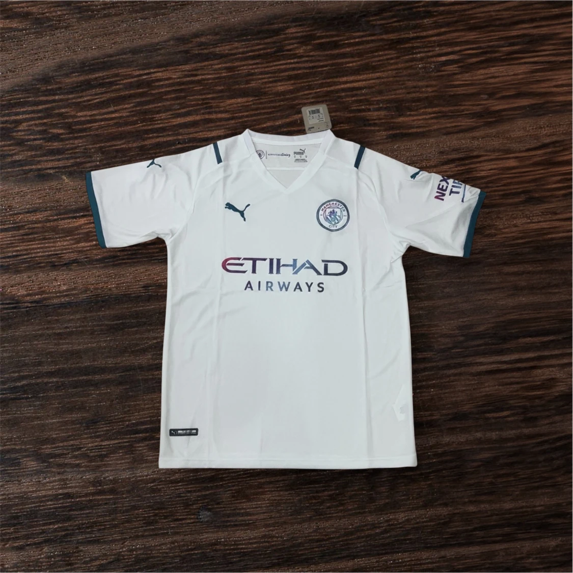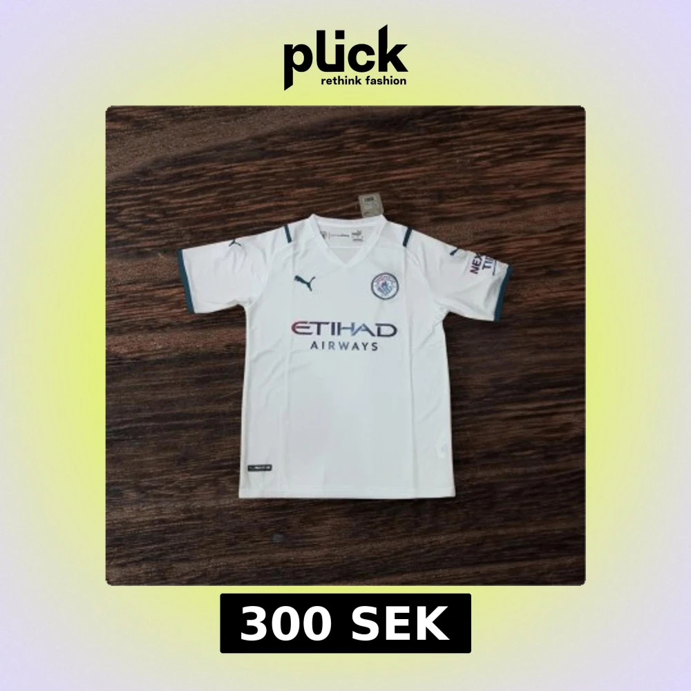 Snygg vit Manchester City fotbollströja från Puma med klubbmärke på bröstet och Etihad Airways tryck. Kortärmad modell med mörkblå detaljer vid ärmslut och axlar. Perfekt för dig som vill representera City på planen eller i vardagen.