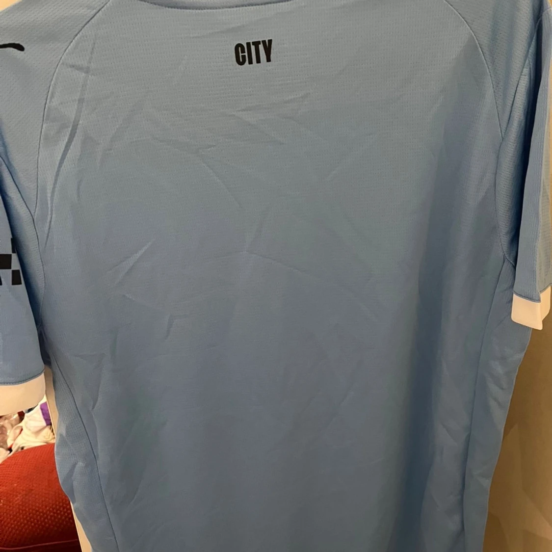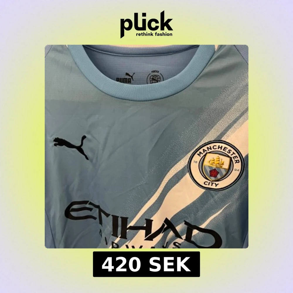 Manchester Citys officiella matchtröja från Puma i ljusblått med vita detaljer och klubbmärke på bröstet. Tröjan har korta ärmar, rund hals och är tillverkad i ett lätt, ventilerande funktionsmaterial. Snyggt tryck med Etihad Airways på framsidan.
